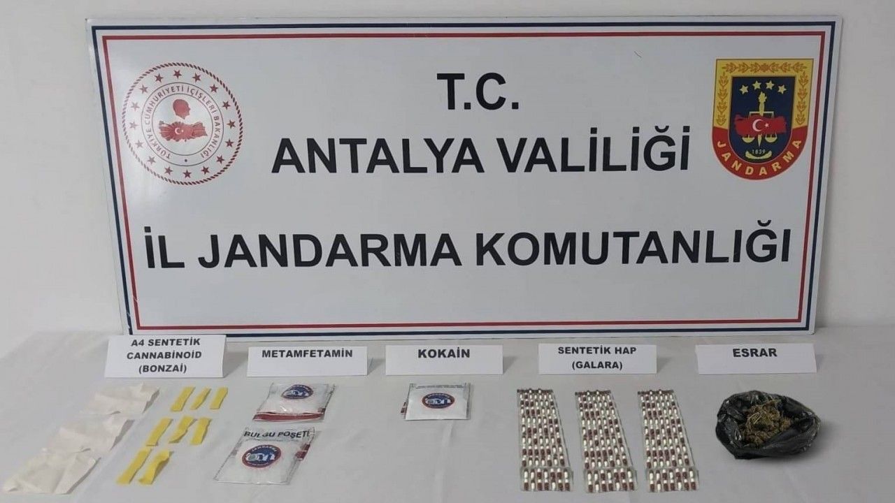 Antalya İl Jandarma Komutanlığı tarafından yürütülen çalışmalar kapsamında, Antalya Cumhuriyet Başsavcılığı talimatıyla Aksu ilçesinde uyuşturucuyla mücadele kapsamında 9 şüphelinin evine eş zamanlı operasyon düzenlendi. Antalya İl Jandarma Komutanlığı Narkotik Şube Müdürlüğü ve Aksu İlçe Jandarma Komutanlığı ekiplerince ikametlerde yapılan aramalarda 225 gram metamfetamin, 43 gram kokain, 210 gram esrar, 420 adet sentetik uyuşturucu hap (Galara) ve 2 bin 850 kullanımlık sentetik kannabinoid ele geçirildi.