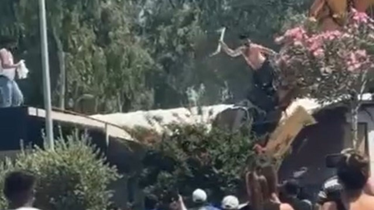 Antalya’nın Aksu ilçesine bağlı turizm bölgesi Kundu’da kaçak olduğu belirtilen dükkan ver çarşıların yıkımı esnasında gerginlik ve arbede oluştu. Bazı esnaf ve çalışanlar, belediye ekiplerine tepki göstererek yıkımı durdurmak için iş yerlerinin çatılarına çıkıp iş makinelerine engel olmaya çalıştı.