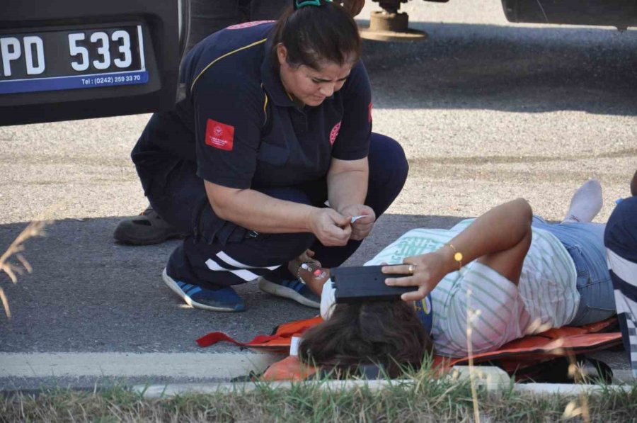 Antalya'nın Alanya ilçesinde direksiyon hâkimiyetini kaybederek orta refüje çıkan otomobilin içerisinde sıkışan çift uzun uğraşlar sonucu araçtan çıkarıldı.