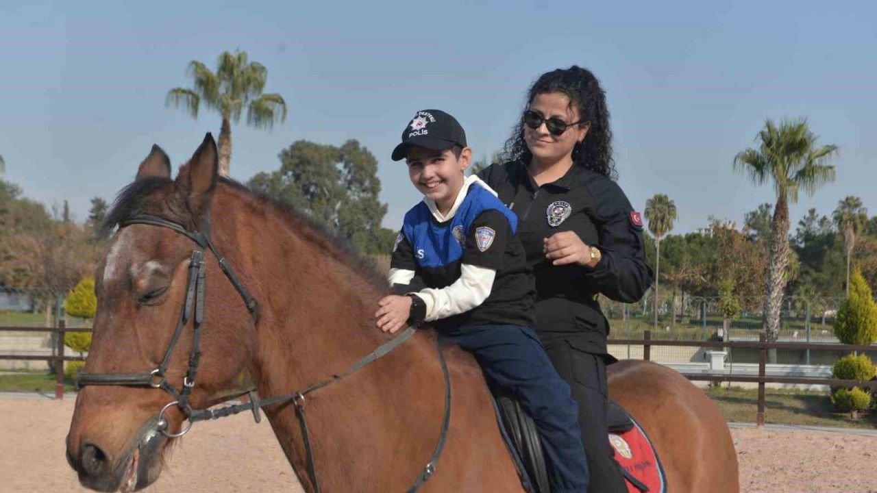 Adana’da ilkokul ikinci sınıf öğrencisi Poyraz atlı polis olma hayaliyle polisleri ve kendisini atın üzerinde çizdi. Adana polisi Poyraz’ın bu hayalini gerçeğe dönüştürerek üniforma giydirip ata bindirip unutmayacağı bir an yaşattı.