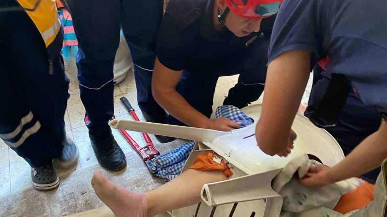 Hatay’da ayağını plastik sandalyeye sıkıştıran vatandaşın imdadına itfaiye yetişti.