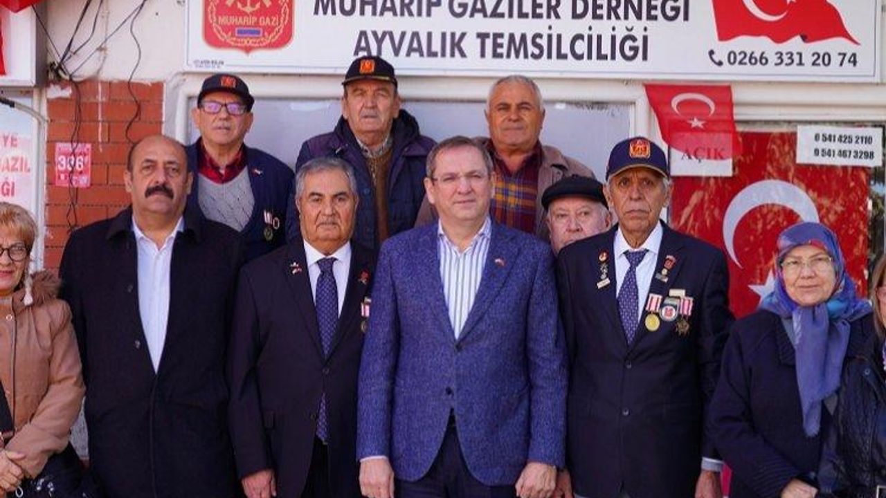 Ayvalık’ta, 31 Mart’ta yapılacak olan yerel seçimler için Cumhuriyet Halk Partisi (CHP) Parti Meclisi tarafından yeniden aday gösterilen Ayvalık Belediye Başkanı Mesut Ergin, Muharip Gaziler Derneği Ayvalık Şubesi’ne ilk resmi ziyaretini gerçekleştirdi.BALIKESİR (İGFA) - Ayvalık’ta 150 Evler Mahallesi eski garajdaki Muharip Gaziler Derneği Ayvalık Şubesi’nde gazilerle bir araya gelen Başkan Ergin’i, Şube Başkanı Mehmet Kıranoğlu ile şube yöneticileri ve gazilere karşıladı.
