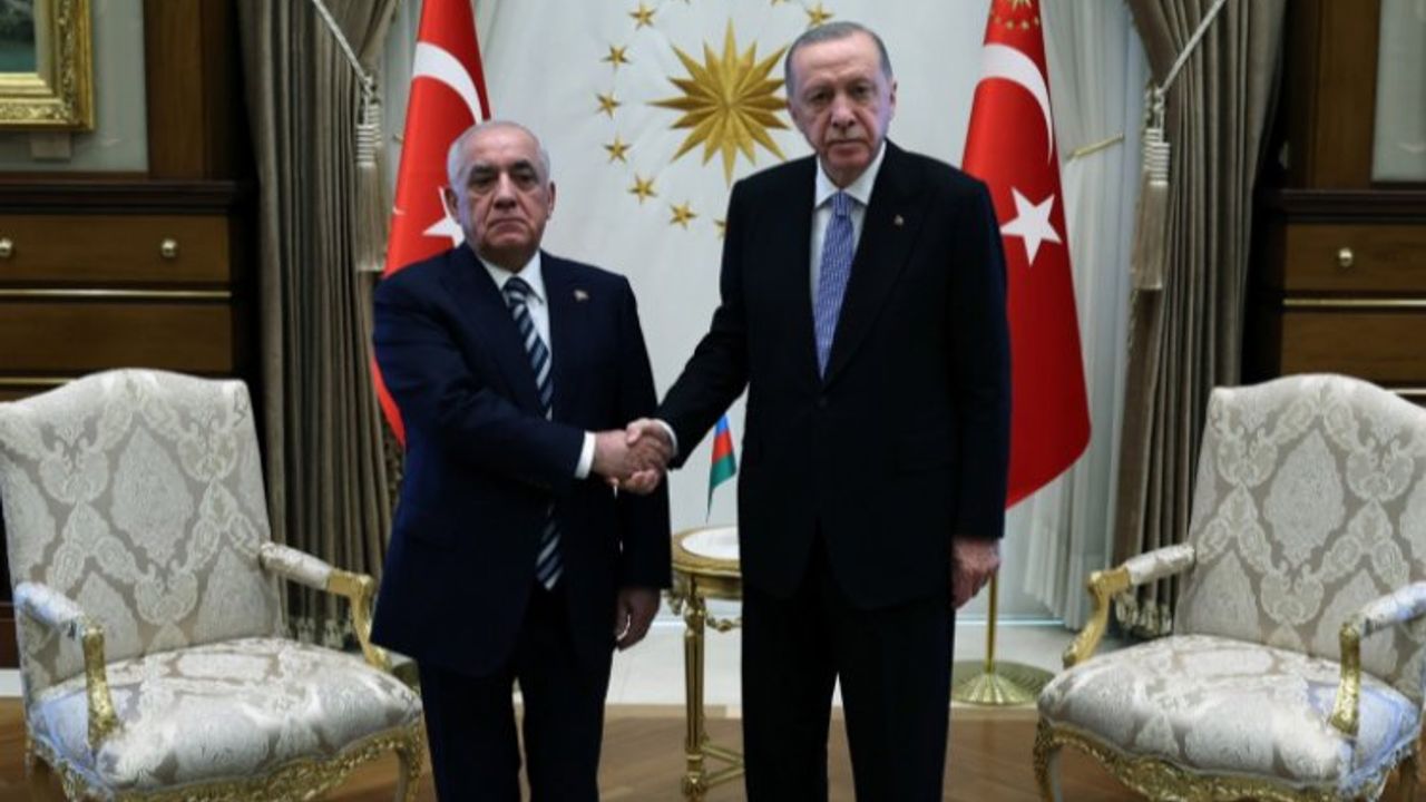 Cumhurbaşkanı Erdoğan, Azerbaycan Başbakanı Asadov’u kabul etti. Başbaşa görüşmeler sonrasında Cumhurbaşkanı Yardımcısı Cevdet Yılmaz ve Azerbaycan Başbakanı Ali Asadov, iki ülke arasındaki anlaşmaların imza töreni yapıldı.ANKARA (İGFA) - Cumhurbaşkanı Recep Tayyip Erdoğan, Azerbaycan Başbakanı Ali Asadov'u, Cumhurbaşkanlığı Külliyesi'nde kabul etti.