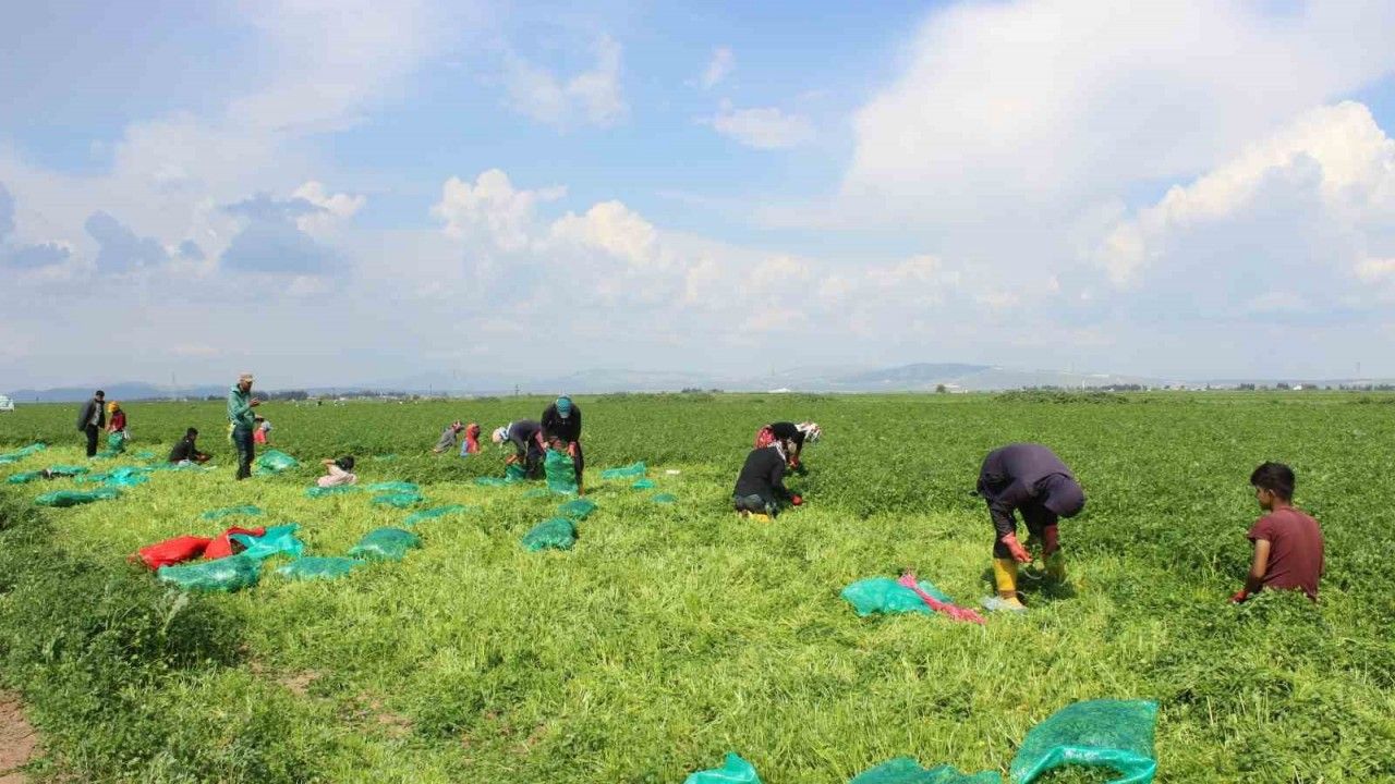 Hatay’ın Reyhanlı ilçesinde başlayan maydanoz hasadı, bölgede yaz sonuna kadar devam edecek. Günde ortala bin 500 TL yevmiye alan Diyarbakırlı işçiler, zorlu koşullar altında günde ortalama 4 dönüm arazi hasat ediyor.