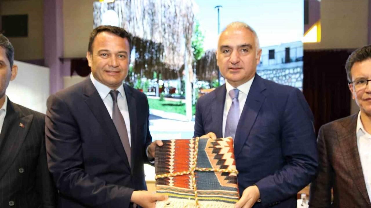 Toplantı sonunda Başkan Ulutaş, Bakan Ersoy’a Barak Kilimi hediye etti. Ardından protokol, ilçede yapım çalışmaları devam eden Kültür Merkezi’nde incelemelerde bulundu.