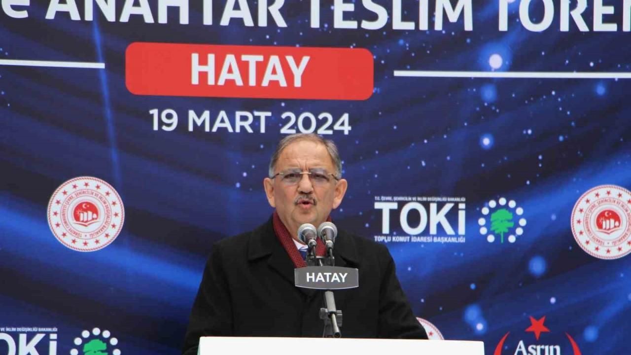 Çevre, Şehircilik ve İklim Değişikliği Bakanı Mehmet Özhaseki, deprem konutlarının önümüzdeki aylarda da devam edeceğini belirterek “Rabbim bir daha böyle felaketi hiç birimize yaşatmasın, diye dua ediyorum. O günden beri hiç durmadan çalıştık, bir saniye bile boşa geçirmedik. Şimdi burada hak sahiplerine evlerini vereceğiz. Geçen ay 7 bin civarında konutumuzu Hatay’da dağıttık, bu günde burada 3 bin 600 civarında konutumuzu dağıtacağız. Çıkmayan kardeşlerimiz üzülmesinler, öbür ay çıkabilir. Öbür ay çıkmazsa diğer ay çıkar, sizler evlerinize oturuncaya kadar ‘hakkımız Cumhurbaşkanına helal olsun, kardeşim senden de Allah razı olsun’ deyinceye kadar buradayız gitmeyeceğiz. Bunu bilin, herkesin hakkını teslim edeceğiz” dedi.