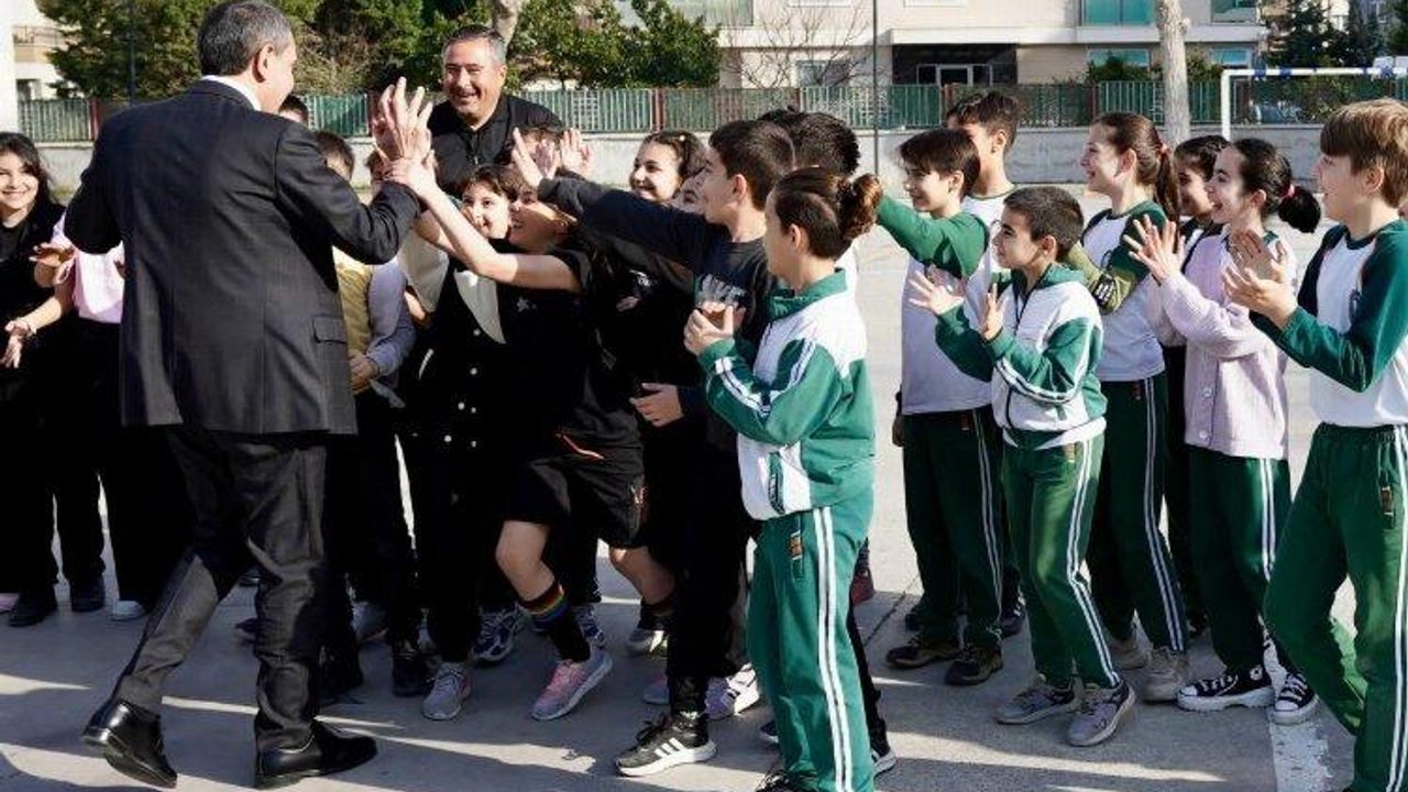 Millî Eğitim Bakanı Yusuf Tekin, İzmir'de Bayraklı Şehit Polis Fethi Sekin İlkokulu ile Bornova Anadolu Lisesini ziyaret ederek öğretmen ve öğrencilerle buluştu.İZMİR (İGFA)- Okulda öğrenci ve öğretmenler tarafından karşılaşılan Milli Eğitim Bakanı Yusuf Tekin, beden eğitimi dersini bahçede işleyen ve basketbol oynayan öğrencilerin yanına giderek sohbet etti, öğrencilerin isteği üzerine basketbol toplarına imza attı. Daha sonra sınıfları gezen Bakan Tekin, öğrencilerle bir süre sohbet etti, isteklerini sordu.