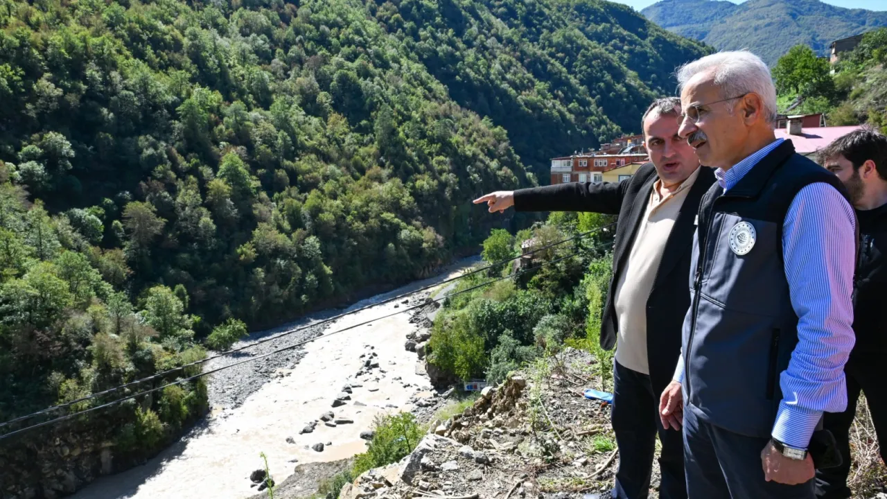 Bakan Uraloğlu, Borçka Camili Yolu'ndaki heyelan ve Karşıköy-Tektaş Köyü Yolu'ndaki sel tahribatlarını yerinde inceleyerek, ekiplerin çalışmalarını denetledi.