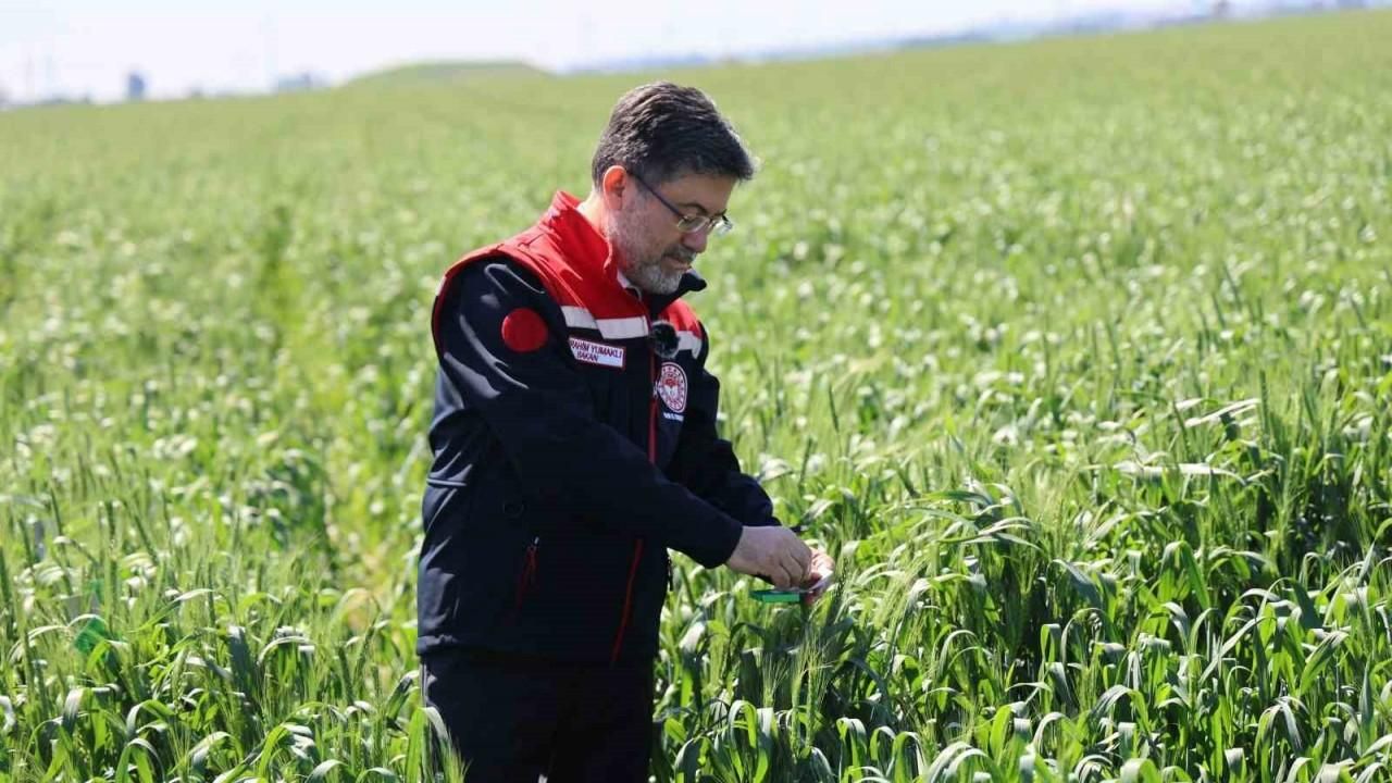 Konuşmanın ardından Bakan Yumaklı, süne zararlısına karşı buğday tarlasına böcek salımı yaptı.