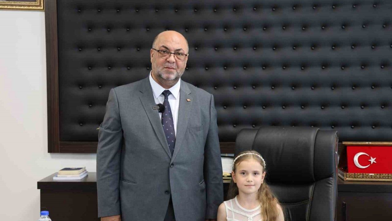 Başkan Akpınar, 23 Nisan Ulusal Egemenlik ve Çocuk Bayramı dolayısıyla makamını temsili olarak Dulkadiroğlu İlkokulu öğrencisi Hatice Sena Aksu’ya teslim etti.