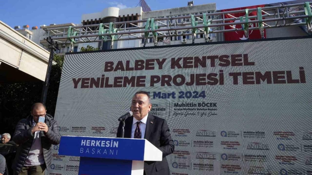 Antalya Büyükşehir Belediye Başkanı Muhittin Böcek, temelini attıkları Balbey Kentsel Yenileme Projesi’nin 1. etabının 1.5 yıl içinde tamamlanacağını söyledi.