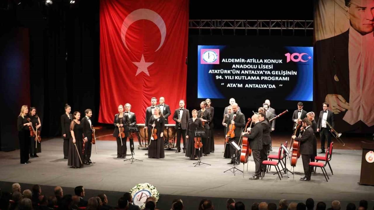 Antalya’yı 94 yıl önce ziyaret ederek vatandaşların sevgi gösterileriyle karşılanan Gazi Mustafa Kemal Atatürk’ün, kenti ziyaretinin yıl dönümü törenle kutlandı. Atatürk Kültür Merkezi’nde (AKM) düzenlenen törene Antalya Valisi Hulusi Şahin, Büyükşehir Belediye Başkanı Muhittin Böcek, protokol üyeleri, öğretmenler, öğrenciler ve vatandaşlar katıldı.