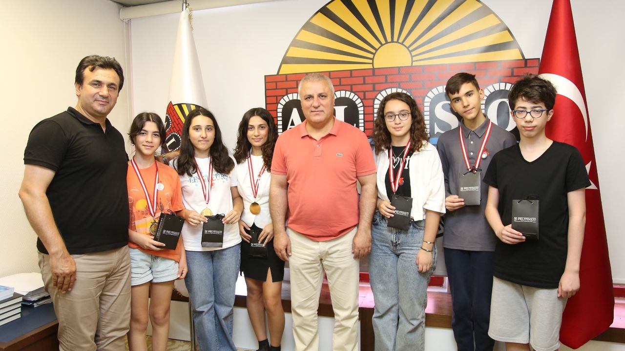 ALTSO Başkanı Eray Erdem, 2023 LGS’de tüm soruları doğru cevaplayarak 500 Tam puan alan Türkiye şampiyonlarına altın hediye etti.
