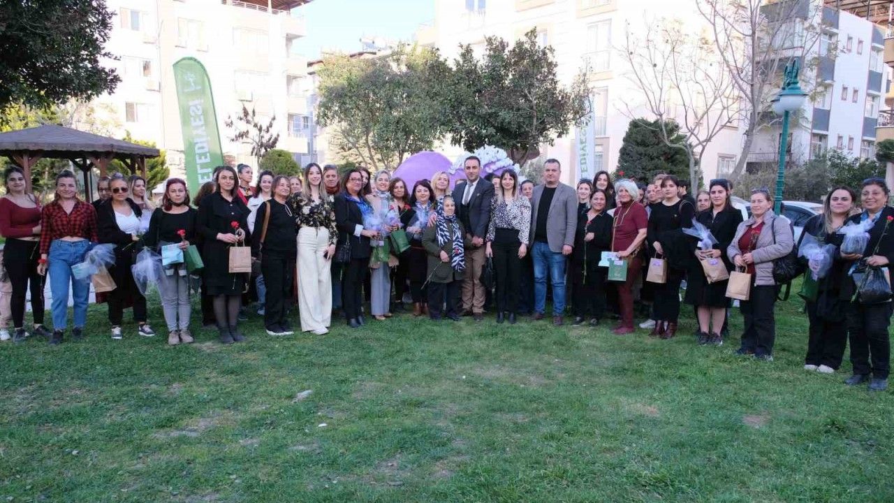 Defne Belediye Başkanı Halil İbrahim Özgün, belediyede görevli kadınlarla bir araya gelerek çiçek takdim etti.