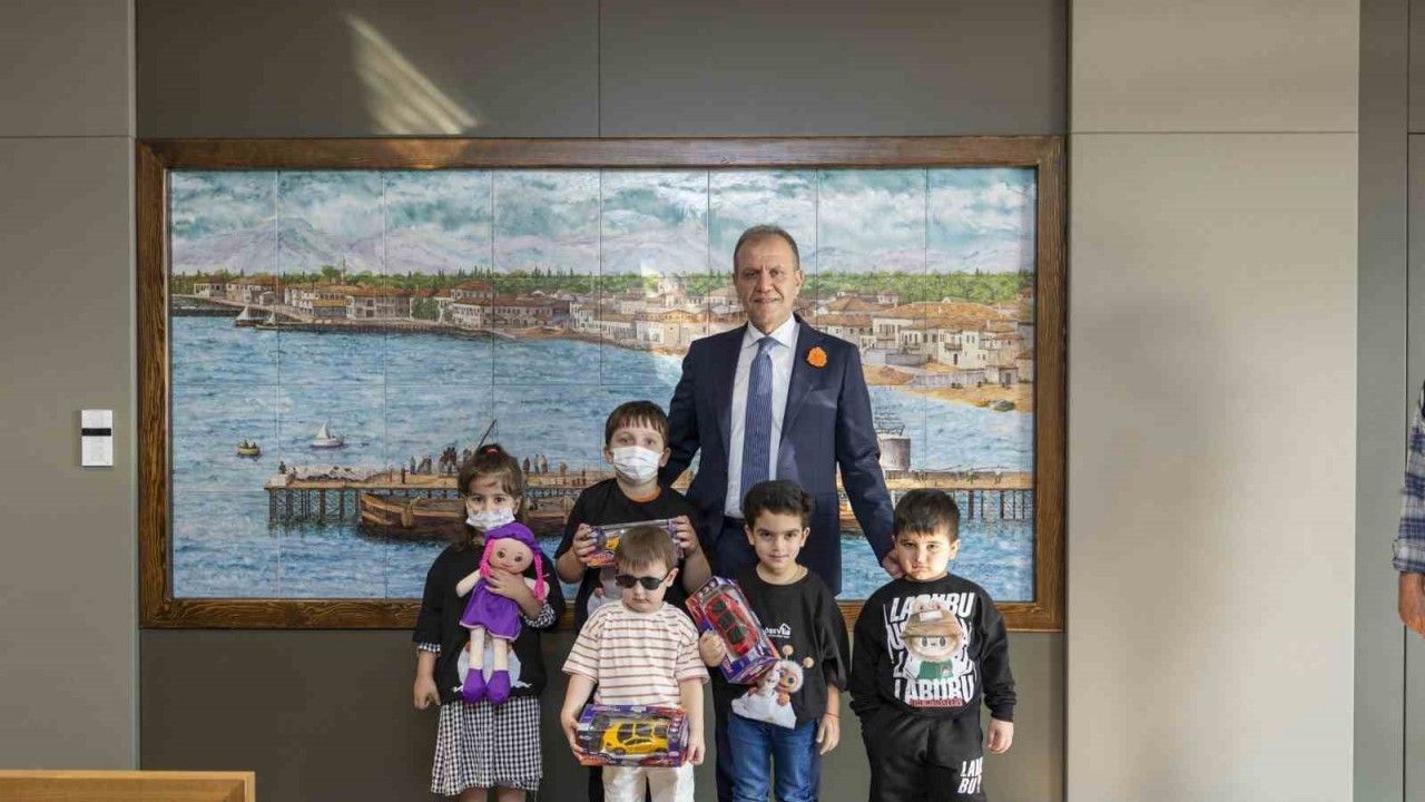 LÖSEV Adana İl Koordinatörü Betül Özgüven tarafından Başkan Seçer’e ‘farkındalık rozeti’ takdim edilen ziyaretin sonunda Başkan Seçer de çocuklara içinde oyuncaklar ve boyama kitaplarının olduğu hediye paketi verdi.