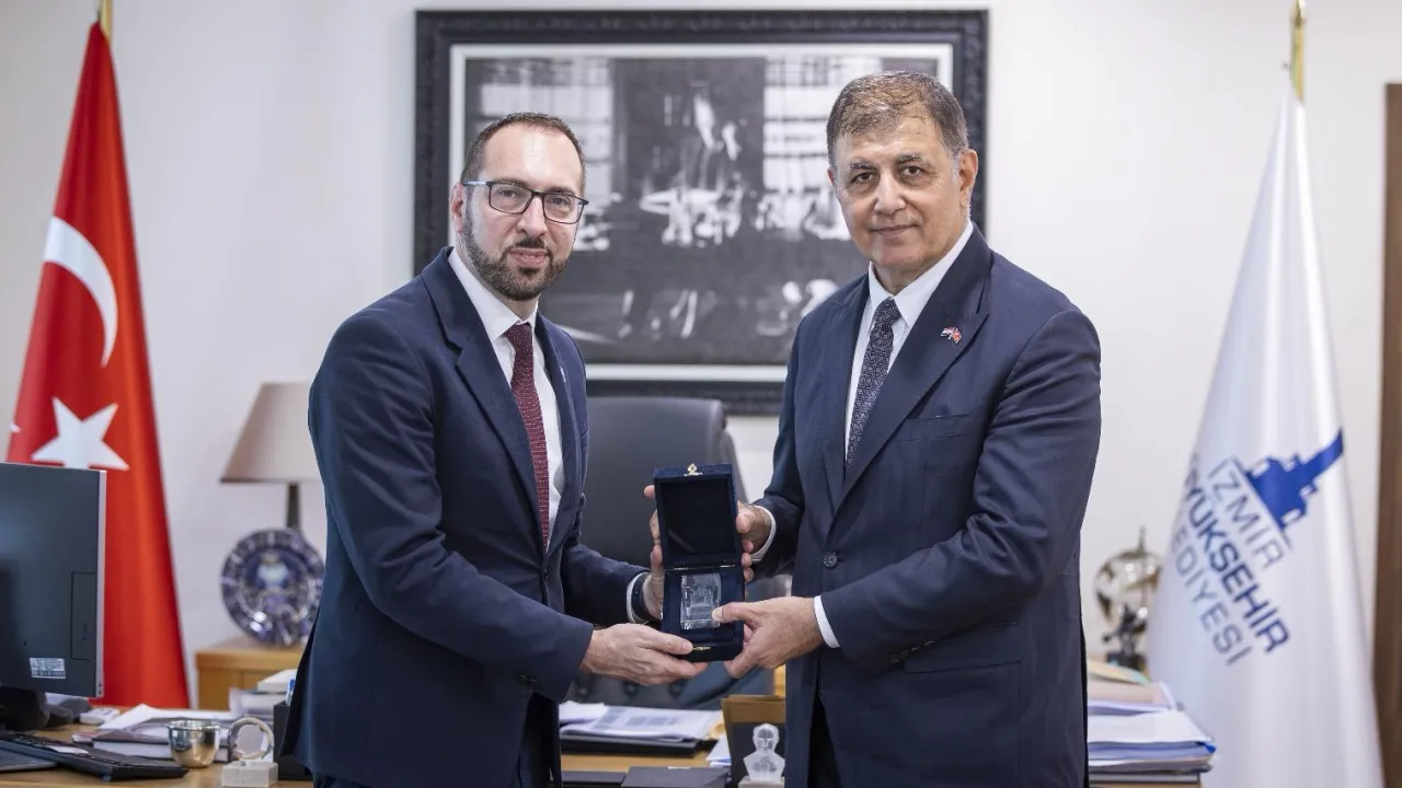 İzmir Büyükşehir Belediye Başkanı Dr. Cemil Tugay, 94. İzmir Enternasyonal Fuarı için kente gelen Belarus’un Ankara Büyükelçisi Anatoli Glaz ile Hırvatistan’ın Zagreb şehrinin Belediye Başkanı Tomislav Tomašević’i makamında ağırladı.İZMİR (İGFA) - Dünyayı İzmir’de buluşturan İzmir Enternasyonal Fuarı için kente gelen konuk ülkelerin temsilcilerinin İzmir Büyükşehir Belediye Başkanı Dr. Cemil Tugay’a ziyaretleri sürüyor. Başkan Tugay, Belarus’un Ankara Büyükelçisi Anatoli Glaz ve sonrasında Hırvatistan’ın Zagreb Belediye Başkanı Tomislav Tomašević’i makamında ağırladı. Görüşmelerde karşılıklı ilişkiler gündeme geldi.
