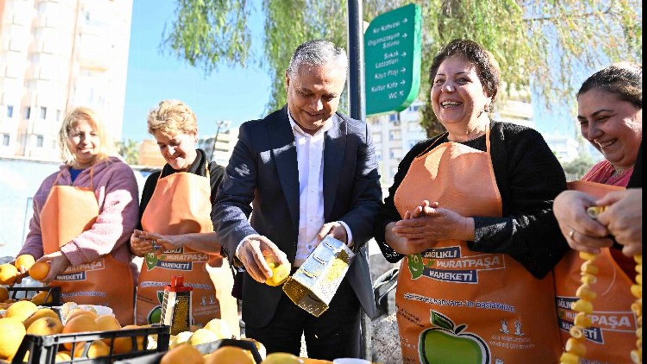 Muratpaşa Belediye Başkanı Ümit Uysal, Antalya’ya yerleşen depremzede kadınlarla birlikte yürütülen Dramayla Yeni Hayata Uyum Sağla projesi kapsamında düzenlenen kermeste kadınlarla turunçları rendeledi, kabuklarını ipe dizdi ve turunç reçeli hazırladı.ANTALYA (İGFA) - Muratpaşa Belediyesi’nin Prof. Dr. Erdal İnönü Kent Parkı’nda yer alan Kadın Kooperatifleri Ürün Satış Mağazası, Yerli Malı Haftası’nda,Çağdaş Drama Derneği ve TUI CareFoundation’ın Dramayla Yeni Hayata Uyum Sağla projesi kapsamında düzenlenen kermese ev sahipliği yaptı. Kermes, Antalya Kadın Girişim Üretimi ve İşletme Kooperatifi destekleriyle gerçekleşti.