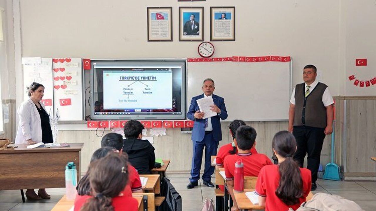 5. sınıf öğrencilerinin “Türkiye’de Yönetim” konulu dersine giren Başkan Yalçın, öncelikle çocuklara davetlerinden dolayı teşekkür ederek sözlerine başladı.