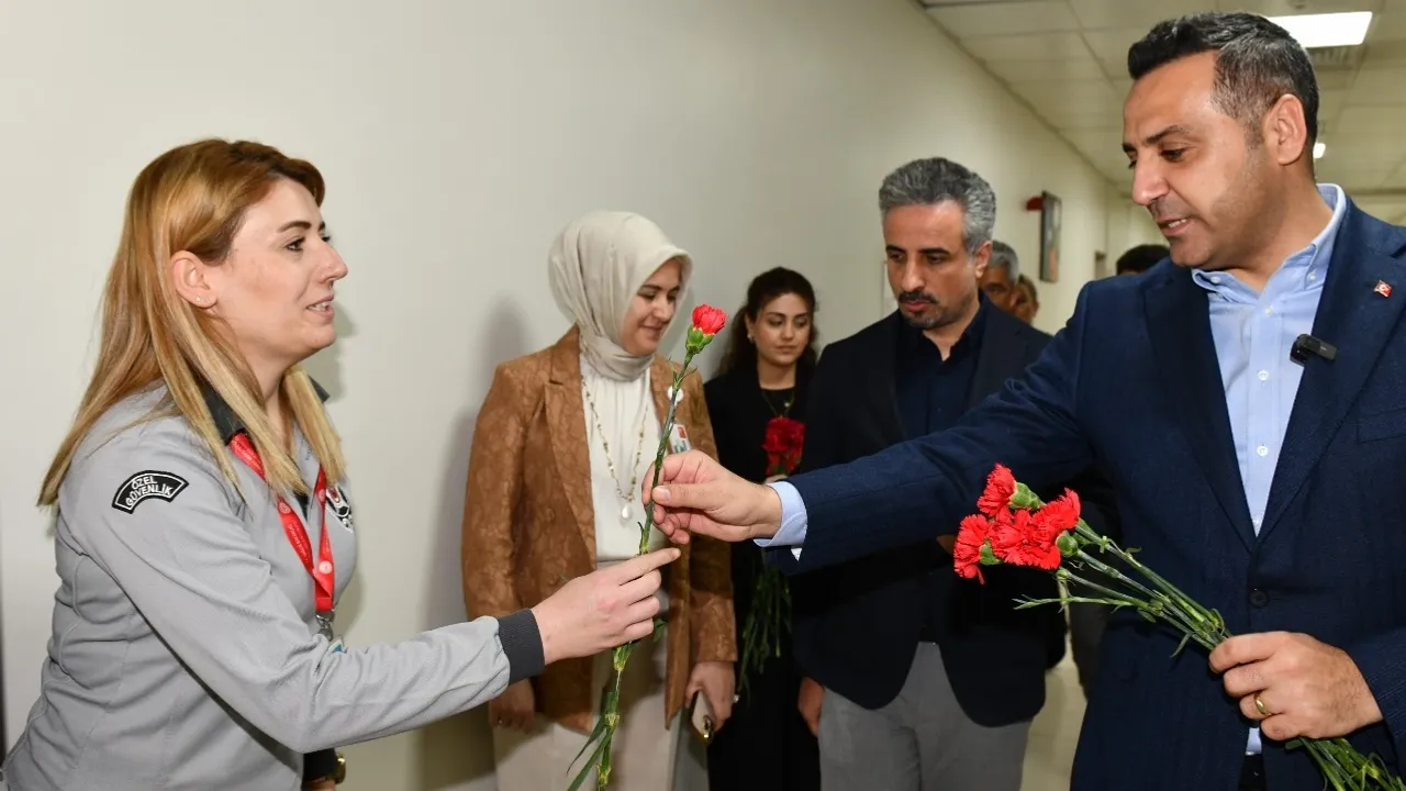 İzmir Çiğli Belediye Başkanı Onur Emrah Yıldız, 14 Mart Tıp Bayramı dolayısıyla sağlık çalışanlarını ziyaret ederek karanfil dağıttı. Başkan Yıldız, sağlık çalışanlarının fedakarlıklarına dikkat çekerek, “Halkımızın sağlığı için gece gündüz demeden büyük bir özveriyle çalışan tüm sağlık çalışanlarımızın Tıp Bayramı’nı kutluyorum. Onların emeği, toplum için paha biçilemez” dedi.İZMİR (İGFA) - İzmir Çiğli Eğitim ve Araştırma Hastanesi’ni ziyaret eden Başkan Yıldız, sağlık çalışanlarına moral desteği verdi. Ziyareti sırasında Başhekim Doç. Dr. Adnan Yamanoğlu’na çiçek takdim eden Yıldız, ardından tüm sağlık emekçilerine karanfil dağıtarak, özverili hizmetlerinden dolayı teşekkür etti.
