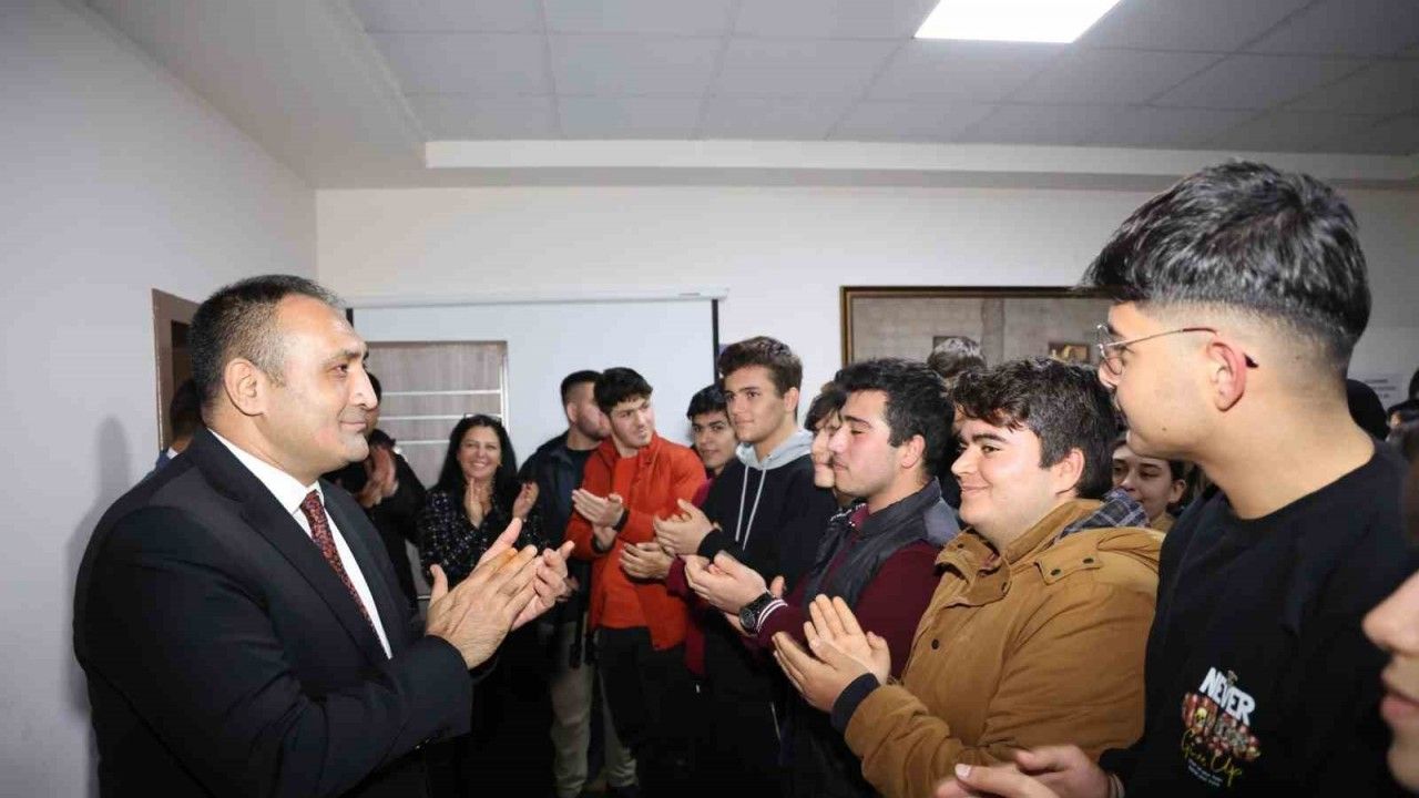 Başkan Yılmaz, daha sonra gençlere hediye vererek yeni yıllarını kutladı. Öğrenciler de eğitimlerine yaptığı katkılarından dolayı Başkan Yılmaz’a teşekkür etti.