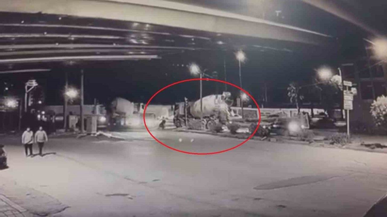 Hatay’ın Antakya ilçesinde beton mikseri, motosikleti ezerek üzerinden geçti. Motosikletten zıplayarak, beton mikserinin altında kalmaktan kurtulan sürücünün o anları kameraya yansıdı.