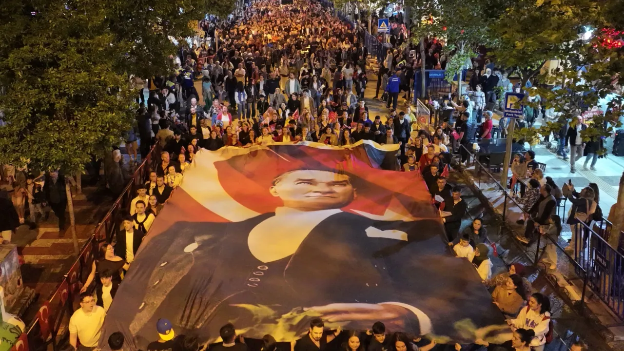 Cumhuriyet Meydanı’na kadar devam eden kortej yürüyüşündeBaşkan Zeyrek ve protokol üyeleri, Manisalıları selamladı.