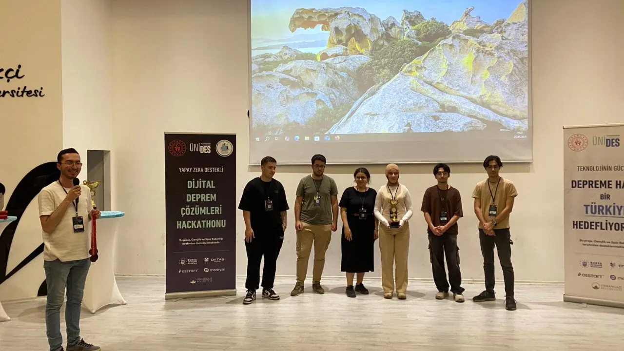 Bursa Teknik Üniversitesinde Endüstri ve Dijital Dönüşüm Topluluğu tarafından düzenlenen “Dijital Deprem Çözümleri Hackathonu” başarıyla tamamlandı. Yarışmada 40 öğrenci, 32 saat boyunca depreme yönelik dijital çözümler üretti. BURSA (İGFA) - Bursa'da Mimar Sinan Yerleşkesi’nde, Endüstri ve Dijital Dönüşüm Topluluğu tarafından organize edilen Dijital Deprem Çözümleri Hackathonu, Gençlik ve Spor Bakanlığı ÜNİDES desteğiyle hayata geçirildi. 11 farklı takımdan oluşan 40 üniversite öğrencisi, 32 saat boyunca aralıksız çalışarak afetlere yönelik dijital çözümler üretti. Etkinlik süresince öğrenciler; deprem öncesi hazırlık, anlık müdahale ve sonrası iyileştirme süreçlerine odaklanan yazılım projeleri geliştirdi. Yarışmada birinciliği, Bursa Uludağ Üniversitesi Yönetim Bilişim Sistemleri öğrencilerinden oluşan İHAWK Takımı kazandı. Deprem sonrası yıkım tespiti ve sektörleme yapabilen bir insansız hava aracı sistemi geliştiren takım; Merve Subaşı, Ömer Turhan, Mehmet Sahaf Bayrakçı, Mohamad Alchekh ve Besmullah Nikzada’dan oluştu.