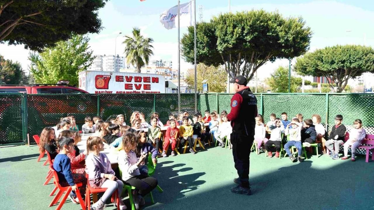 Konyaaltı Belediyesi Destek Hizmetleri Sivil Savunma Birimi ekipleri, Deprem Haftası nedeniyle belediyenin kreş ve gündüz bakım evlerindeki minik öğrencilere acil durum eğitimi ve deprem tatbikatı gerçekleştirdi. Tatbikata arama kurtarma köpeği Zeyna’nın da katılması renkli görüntülere sahne oldu.