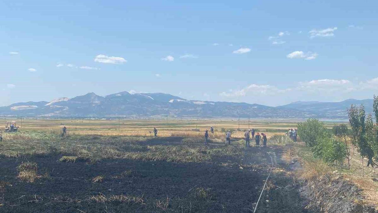 Burdur’da Akyaka köyünde çıkan yangında 3 dönüm buğday ekili alan zarar gördü.