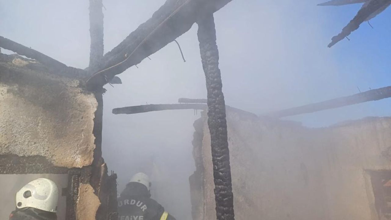 Burdur’da 2 katlı köy evinde çıkan yangında ev tamamen yanıp kül oldu.