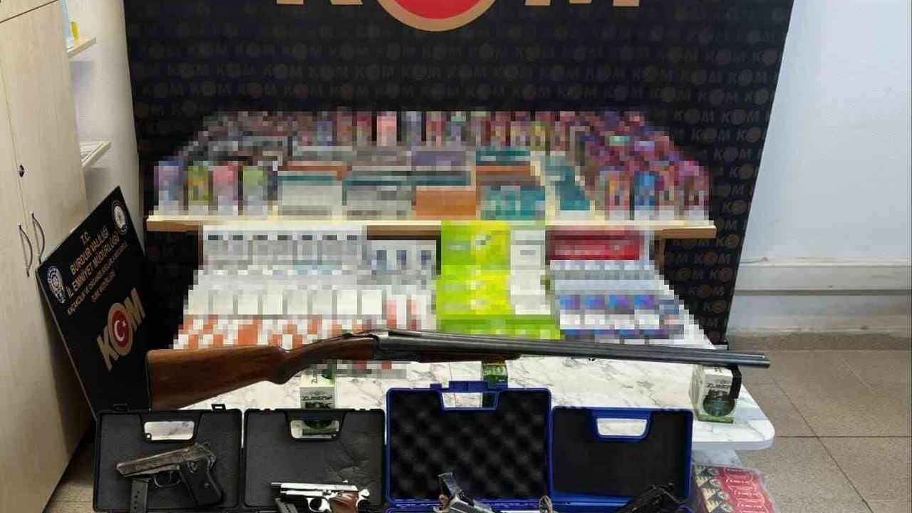 Burdur Cumhuriyet Başsavcılığı koordinesinde, Kaçakçılık ve Organize Suçlarla Mücadele Şube Müdürlüğü görevlilerince kaçakçılığa yönelik yürütülen çalışmalar kapsamında; 5607 sayılı Kaçakçılıkla Mücadele Kanunu ve 6136 Ateşli Silahlar ve Bıçaklar İle Diğer Aletler Hakkında Kanuna Muhalefet suçlarını işlediği tespit edilen şahıslara yönelik operasyon düzenlendi. Operasyonlarda 5 şahıs hakkında adli işlem yapıldı. Aramalarda bin 494 litre sahte alkol yapımında kullanılan etil/metil alkol, 160 adet elektronik sigara, 250 paket ısıtılmış tütün ürünü, 150 paket (3 bin adet) kaçak sigara, 3 adet ruhsatsız tabanca, 2 adet kurusıkı tabanca, 1 adet ruhsatsız av tüfeği, 2 bin 90 adet tabanca fişeği, 150 adet kurusıkı tabanca fişeği, 185 adet farklı ebatlarda av tüfeği kartuşu, 10 adet farklı ebatlarda boş tabanca şarjörü, 280 adet kaçak şarj aleti ve başlığı, 794 adet kaçak sigara sarma kağıdı ele geçirildi. Olaya ilişkin tahkikat devam ediyor.