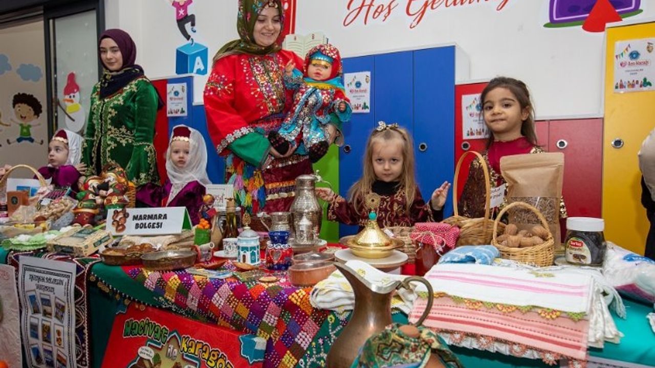 Bursa Büyükşehir Belediyesi’nin okul öncesi eğitimde bir marka haline gelen Ana Kucakları’nda eğitim gören minikler, ‘Yerli Malı Haftası’nı renkli bir programla kutladı. Türkiye’nin 7 bölgesine özgü yiyecek, kıyafet ve dans figürlerinin sergilendiği programda, çocuklar yerli malı kullanmanın önemini büyüklere anlattı.BURSA (İGFA) - Bursa Büyükşehir Belediyesi’nin özellikle dar gelirli ailelerin çocuklarının da okul öncesi eğitim hizmetlerinden faydalanabilmesi amacıyla 2019 yılında başlattığı Ana Kucakları, zengin müfredatıyla çocukları geleceğe en iyi şekilde hazırlıyor.