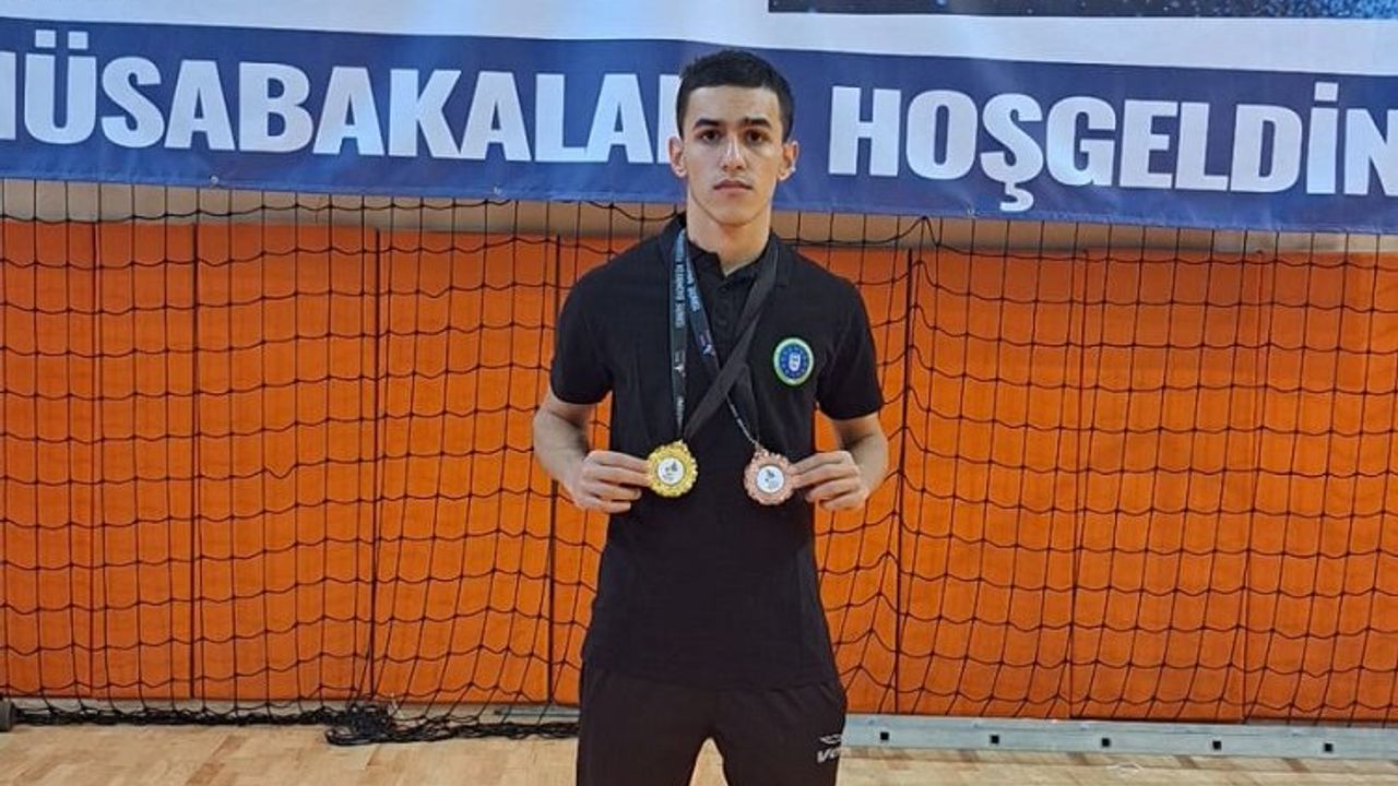 Aksaray’da düzenlenen İşitme Engelliler Badminton Türkiye Şampiyonası’nda Bursa Büyükşehir Belediyesporlu Mert Nurettin Aydın 2 madalya kazandı.AKASARAY (İGFA) - Dağılgan Spor Salonu'nda yapılan şampiyonaya 63 sporcu katılırken, Bursa Büyükşehir Belediyesporlu badmintoncu, 1 altın, bir bronz madalya kazanmayı başardı.