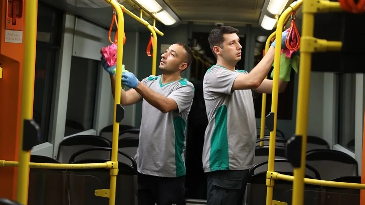 Büyükşehir Belediyesi, günde 800 bin fazla vatandaşın kullandığı toplu taşıma araçlarında hijyen çalışmalarını büyük bir titizlikle yürüterek halk sağlığına büyük önem veriyor.BURSA (İGFA) - Bursa’nın en önemli konularından biri olan ulaşımı rahatlatmak ve konforu artırmak amacıyla yeni projeleri hayata geçiren Büyükşehir Belediyesi, BURULAŞ bünyesindeki toplu taşıma araçlarında hijyeni en üst seviyeye çıkarmak için temizlik çalışmalarını periyodik olarak yürütüyor.