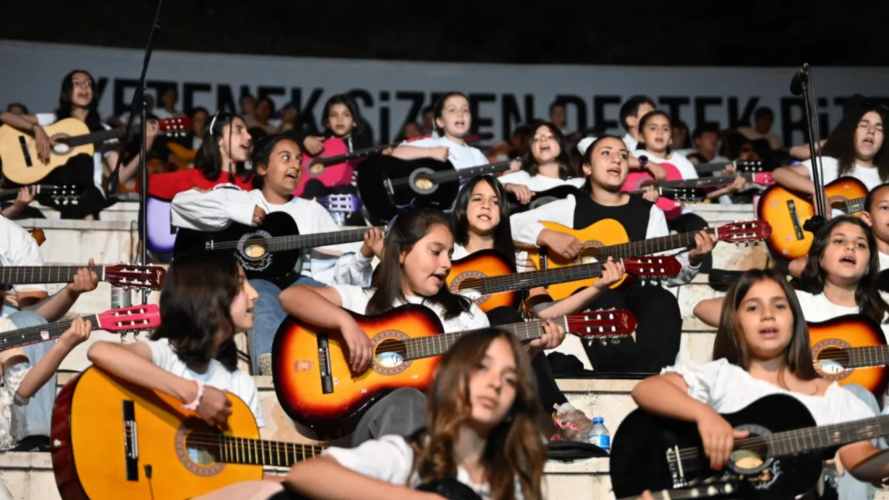 19 Mayıs Atatürk’ü Anma, Gençlik ve Spor Bayramı kutlamalarında Gemlik’te yüzlerce genç sanatçı, görkemli bir programda sahne aldı.BURSA (İGFA) - Bursa Gemlik Belediyesi’nin girişimleriyle, Gemlik İlçe Millî Eğitim Müdürlüğü iş birliğinde geçtiğimiz eylül ayında başlayan “Yetenek Sizden, Destek Bizden” projesi, yaklaşık 2 bin Gemlikli öğrenciyi sanatla buluşturdu. Gitar, bağlama, keman, ritim, halk oyunları ve tiyatro dallarında eğitim gören gençler, aylar süren çalışmalarının meyvelerini 19 Mayıs kutlamalarında aldı.
