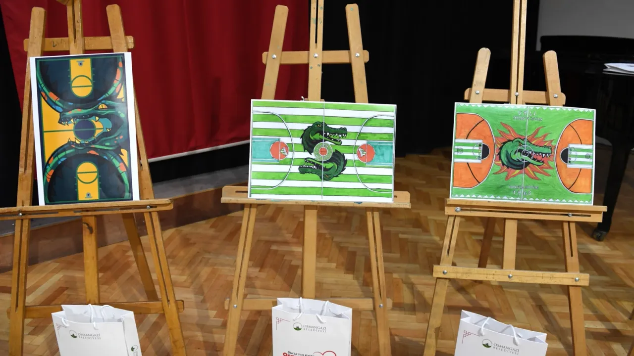 Bursa'da Osmangazi Belediyesi, Zeki Müren Güzel Sanatlar Lisesi ve Bursaspor Basketbol iş birliğinde düzenlenen “Basketbol Sahaları Zemin Tasarımı Yarışması”nda, 5 bin Bursalının oylarıyla dereceye giren tasarımlar açıklandı.BURSA (İGFA) - Osmangazi Belediyesi, Zeki Müren Güzel Sanatlar Lisesi ve Bursaspor Basketbol’un ortaklaşa düzenlediği “Basketbol Sahaları Zemin Tasarımı Yarışması”nda kazanan tasarımlar, 5 bin Bursalının katılımıyla belirlendi.