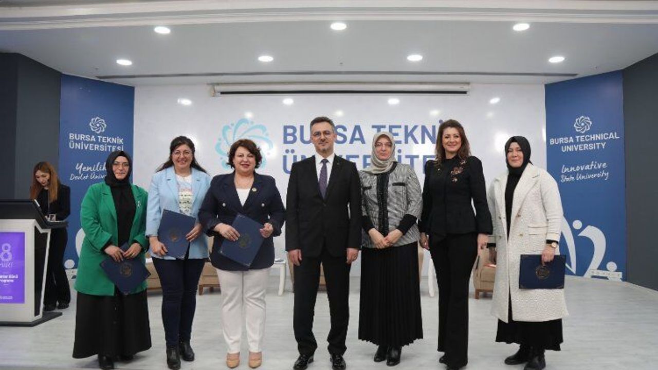 Bursa Teknik Üniversitesinde (BTÜ) 8 Mart Dünya Kadınlar Günü dolayısıyla etkinlik düzenlendi. Kadın personele özel düzenlenen etkinlikte, kadın derneklerinin temsilcileri de yer alarak, yaptıkları çalışmalar hakkında bilgi verdi.BURSA (İGFA) - Mimar Sinan Yerleşkesi Turkuaz Salon’da düzenlenen 8 Mart Dünya Kadınlar Günü etkinliğine BTÜ Rektörü Prof. Dr. Naci Çağlar ile eşi Berna Çağlar, Rektör Yardımcıları Prof. Dr. Barış Tamer Tonguç ile eşi Aslı Tonguç, Prof. Dr. Beyhan Bayhan ve Prof. Dr. Sinan Uyanık, kadın derneklerinin temsilcileri, akademik ve idari kadın personel katıldı. Etkinliğin açılış konuşmasını yapan Rektör Prof. Dr. Naci Çağlar, kadına şiddet olaylarının hala devam ettiğini ve her türlü şiddetin karşısında olduklarını söyledi. BTÜ olarak kadını ve aileyi merkeze alan çalışmalar yaptıklarını ifade eden Çağlar, “Üniversitemizin personel dağılımında kadınlarımız yüzde 44 orana sahiptir ve önemli birimlerimizin yöneticiliğini başarı ile yürütmektedirler. Özellikle Bursateknoparkımızın tüm çalışanlarının kadınlardan oluştuğunu gururla paylaşıyorum. Kadınlara bir gün değil her gün değer vermemiz gerektiğini hatırlatarak, tüm birimlerimizdeki kadın personelimize emekleri için teşekkür ediyorum” dedi.