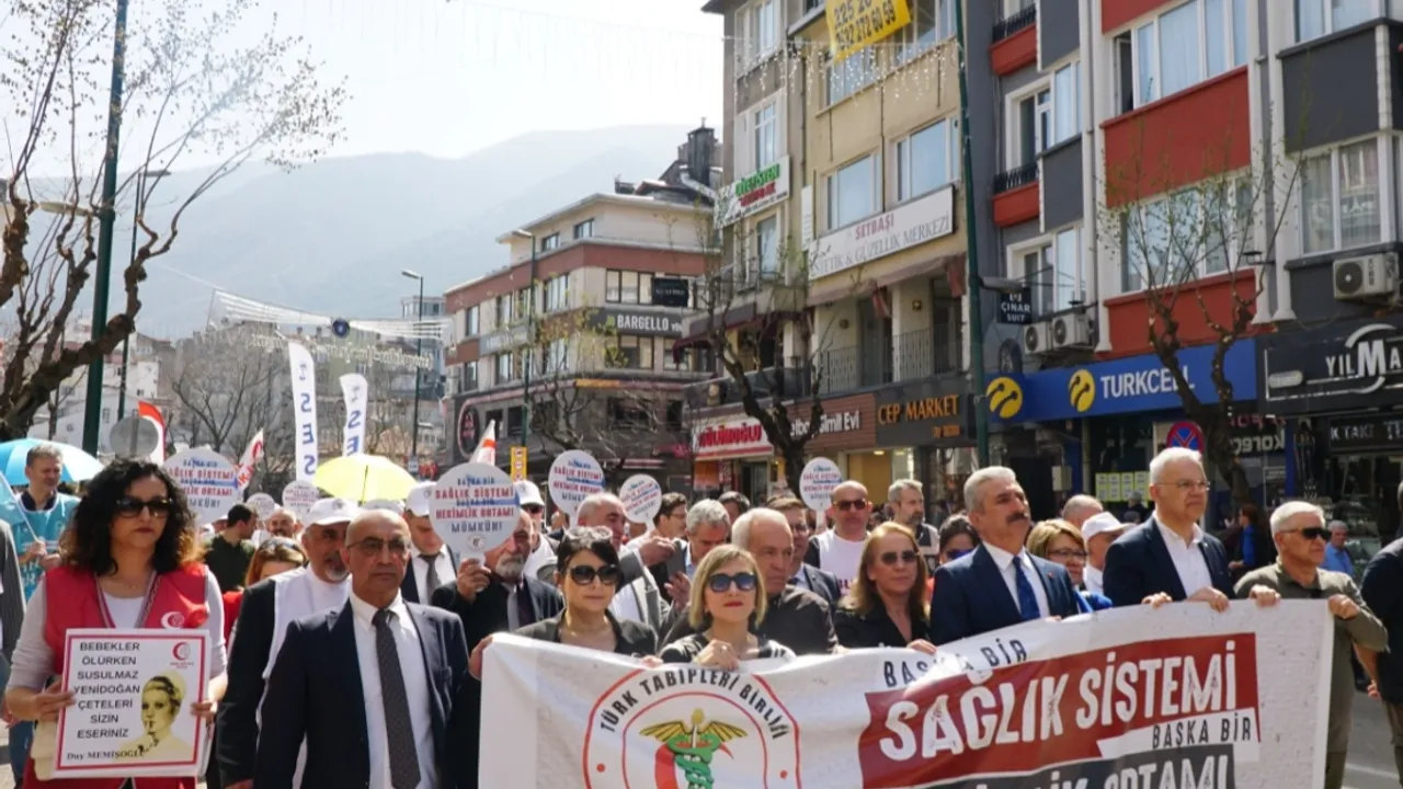 Bursa Tabip Odası 14 Mart Tıp Bayramı dolayısıyla, Bursa’da basın açıklaması, yürüyüş ve çelenk bırakma töreni gerçekleştirdi.BURSA (İGFA) - Bursa'da Setbaşı’nda toplanan hekimler adına açıklama yapan Bursa Tabip Odası Başkanı Dr. Kadir Binbaş, 14 Mart’ın bu tarihselliğinden ve insanların ruhuna ve bedenine temas edebilme ayrıcalığına sahip olan hekimliğin sorgulayıcı, biat etmeyen ve bağımsızlıkçı yönünden güç alarak sorunlarımızı gidermek üzere önerilerimizi, taleplerimizi ve demokratik tepkimizi 2025 yılında da göstermeye devam edeceklerini söyledi.