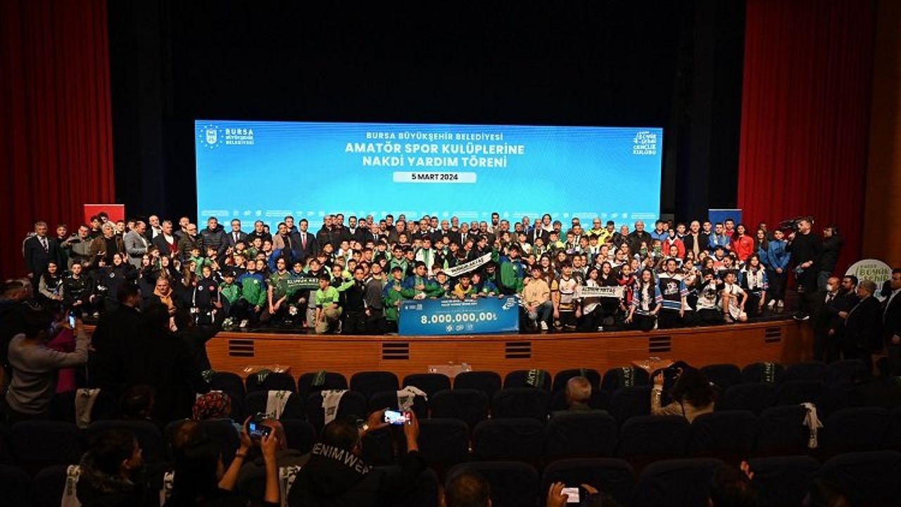 Bursa’da sporun ve sporcunun her zaman yanında olan Büyükşehir Belediyesi, 533 amatör spor kulübüne toplam 8 milyon TL nakdi yardımda bulundu. Bursa’nın spor anlamında tek gönül yarasının Bursaspor olduğunu söyleyen Büyükşehir Belediye Başkanı Alinur Aktaş, “Hiç kimse hamasi nutuklarla Bursaspor’la alakalı siyaset yapmayacak. Herkes taşın altına elini koyacak. Ben Bursasporluluk sıfatımla üzerime düşen ne görev varsa sonuna kadar yapacağım” dedi.BURSA (İGFA) - Bursa’nın spor şehri özelliğinin güçlenmesi ve her gencin en az bir spor dalıyla ilgilenmesi amacıyla birçok projeyi hayata geçiren Büyükşehir Belediyesi, amatör spor kulüplerini desteklemeye devam ediyor. 2018 yılında 177 amatör futbol kulübüne toplam 1 milyon 100 bin TL, 2018-2019 ve 2019-2020 futbol sezonları için 240 amatör spor kulübünün liglere katılım ücreti olarak 298 bin TL, 2021-2022 futbol sezonları için 2,5 milyon TL, 2023 yılında ise 520 spor kulübüne toplam 4,5 milyon TL’lik nakdi destek sağlayan Bursa Büyükşehir Belediyesi, şimdi de 533 amatör spor kulübüne toplam 8 milyon TL nakdi yardım yaptı. Kulüpler bu desteği, spor sahası kazandırılması, malzeme desteği sağlanması ve spora teşvik amacıyla kullanabilecek. Atatürk Kongre ve Kültür Merkezi’ndeki amatör spor kulüplerine destek töreni, ‘Futbolun Yıldızları Bursa’da söyleşisiyle başladı. Moderatörlüğünü Spor Yazarı Emre Bol’un yaptığı söyleşiye, eski milli futbolcular Oktay Derelioğlu ve Evren Turhan ile eski futbolcu İbrahim Yattara katıldı. Futbol kariyerleri boyunca yaşadıkları güzel anıları gençlerle paylaşan futbolcular, sporla ilgilenen gençlere tavsiyelerde de bulundu.