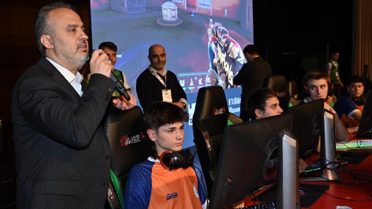 Bursa Büyükşehir Belediyesi tarafından düzenlenen 100. Yıl Liseler Arası Bursa E-Spor Valorant Turnuvası’nın final müsabakaları gerçekleşti.BURSA (İGFA) - Büyükşehir Belediye Başkanı Alinur Aktaş, Merinos Atatürk Kongre ve Kültür Merkezi’nde düzenlenen Liselerarası E-Spor Turnuvası’nın final heyecanında gençleri yalnız bırakmadı.