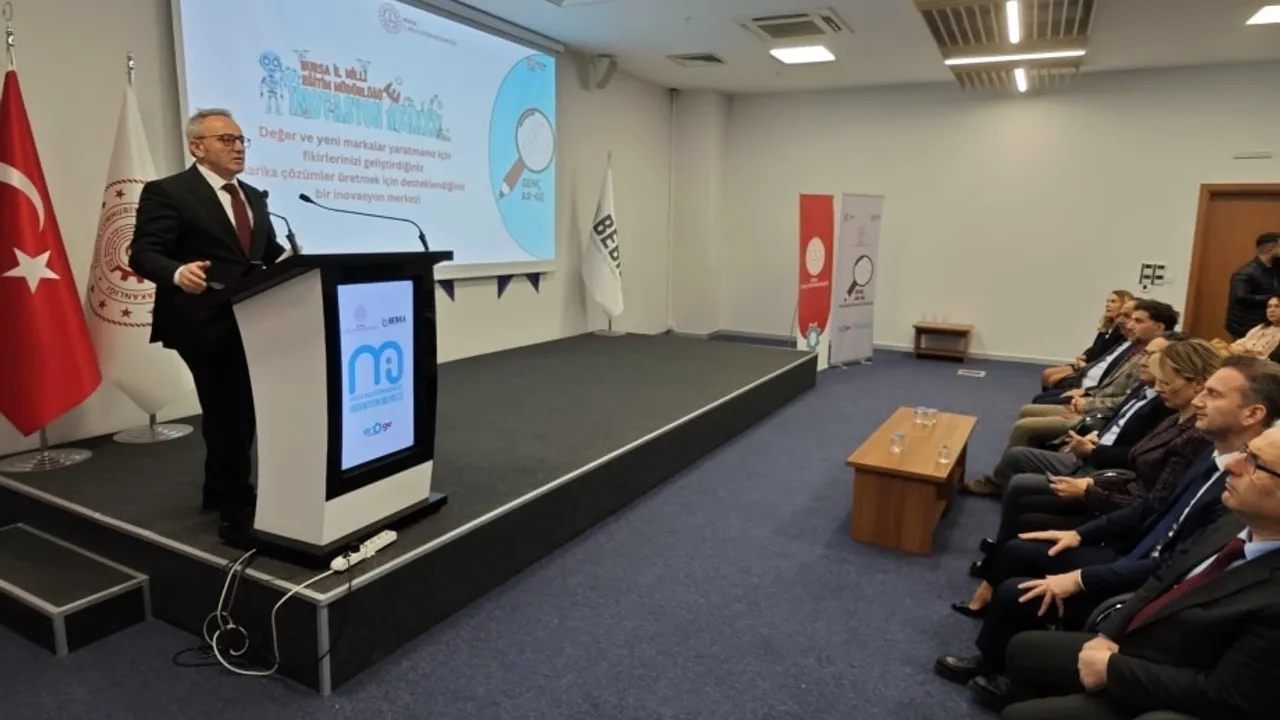 Bursa İl Millî Eğitim Müdürlüğü tarafından hazırlanan "Genç Ar-Ge İnovatif Düşünce Akademisi" programı, İl Millî Eğitim Müdürü Dr. Ahmet Alireisoğlu'nun katılımıyla Bursa İnovasyon Merkezinde gerçekleştirildi.BURSA (İGFA) - Genç Ar-Ge İnovatif Düşünce Akademisi, lise öğrencilerini (14-18 yaş) gelecekteki kariyer hedefleri için bilinçlendirerek, yenilikçi fikirler geliştirme, girişimcilik becerileri kazanma ve projelerini somut çıktılara dönüştürme süreçlerini desteklemeyi amaçlıyor. Bu sayede öğrencilerin toplumsal ve çevresel sorunlara duyarlı, etkili çözümler üreten girişimci bireyler olarak yetişmelerine katkı sağlanması hedefleniyor.