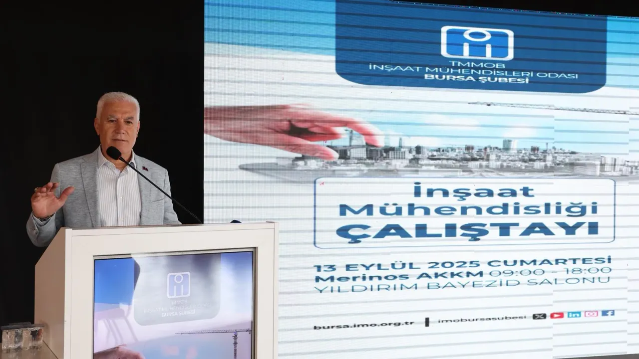 Türk Mühendis ve Mimar Odaları Birliği (TMMOB) İnşaat Mühendisleri Odası tarafından düzenlenen çalıştayına katılan Büyükşehir Belediye Başkanı Mustafa Bozbey, “Hedefimiz daha güvenli, daha yeşil, daha yaşanabilir bir Bursa” dedi.BURSA (İGFA) - TMMOB İnşaat Mühendisleri Odası tarafından düzenlenen çalıştay programı, Atatürk Kültür Merkezi Merinos Yerleşkesi’nde yoğun katılımla gerçekleştirildi. İnşaat mühendisliği mesleğinin güncel sorunlarının, yeni projelerin ve çözüm önerilerinin konuşulduğu çalıştayda konuşan Büyükşehir Belediye Başkanı Mustafa Bozbey, Bursa’nın geleceğini inşa eden mühendislerin kent için taşıdığı önemi vurguladı. Bilimsel ve teknik verilere dayalı projelerin kentin sürdürülebilir gelişimine katkı sunacağını belirten Bozbey, “Bursa gibi tarihi ve kültürel mirası güçlü bir şehirde, mühendislerin ve mimarların desteği olmadan sağlıklı bir kentleşmeden bahsetmek mümkün değildir. Bursa Büyükşehir Belediyesi olarak hedefimiz daha güvenli, daha yeşil, daha yaşanabilir bir Bursa. Bunun için projeler geliştiriyor, çalışıyoruz. Çalıştayın verimli, ufuk açıcı ve birleştirici sonuçlar üretmesini diliyorum” diye konuştu.