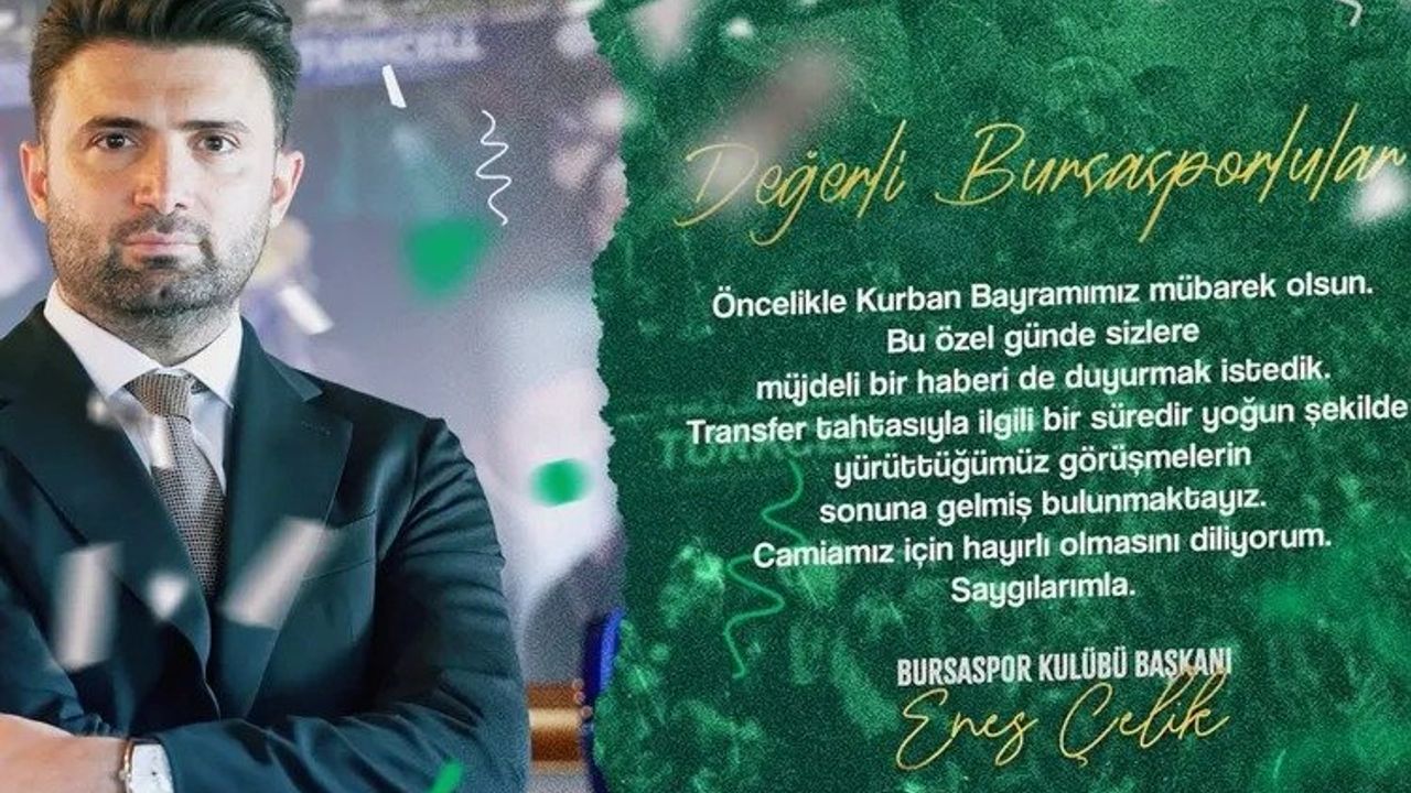 Başkan Çelik, “Öncelikle Kurban Bayramımız mübarek olsun. Bu özel günde sizlere müjdeli bir haberi de duyurmak istedik. Transfer tahtasıyla ilgili bir süredir yoğun şekil yürüttüğümüz görüşmelerin sonuna gelmiş bulunmaktayız. Camia için hayırlı olmasını diliyorum. Saygılarımla” diyerek transfer tahtasının açıldığını resmen duyurdu.