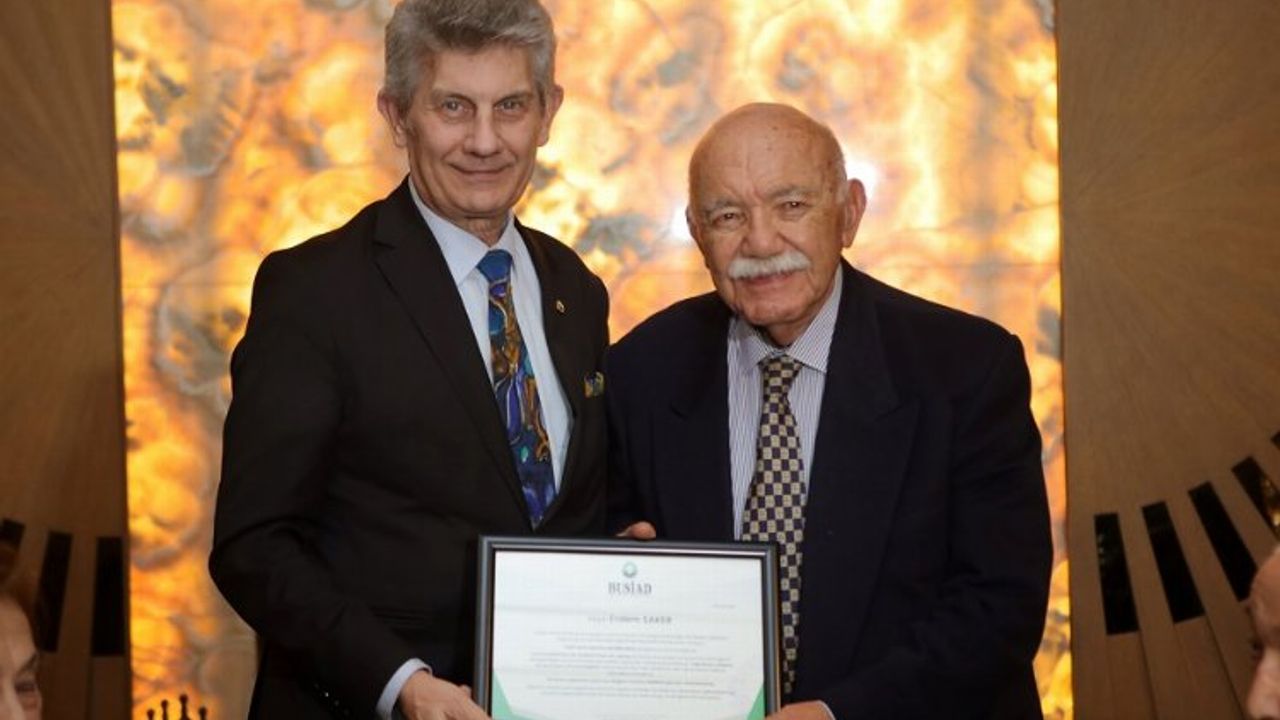 Bursa Sanayici ve İş İnsanları Derneği’nin (BUSİAD) geleneksel yılbaşı yemeğinde, Bursa Büyükşehir Belediyesi’nin 1994-1999 yılları arasında Başkanlığını yapmış olan Erdem Saker’e Onur Üyeliği takdim edildi.BURSA (İGFA) - BUSİAD Yönetim Kurulu Üyeleri, eski başkanlar ve kurucu üyelerinin katıldığı geleneksel yemekte konuşan BUSİAD Yönetim Kurulu Başkanı Buğra Küçükkayalar, “Bursa’ya sevginiz ve hizmetinizin, DSİ Bölge Müdürlüğü, Büyükşehir Belediye Başkanlığı ve sonrasındaki toplumsal hayattaki duruşunuzla tanığıyız” dedi.