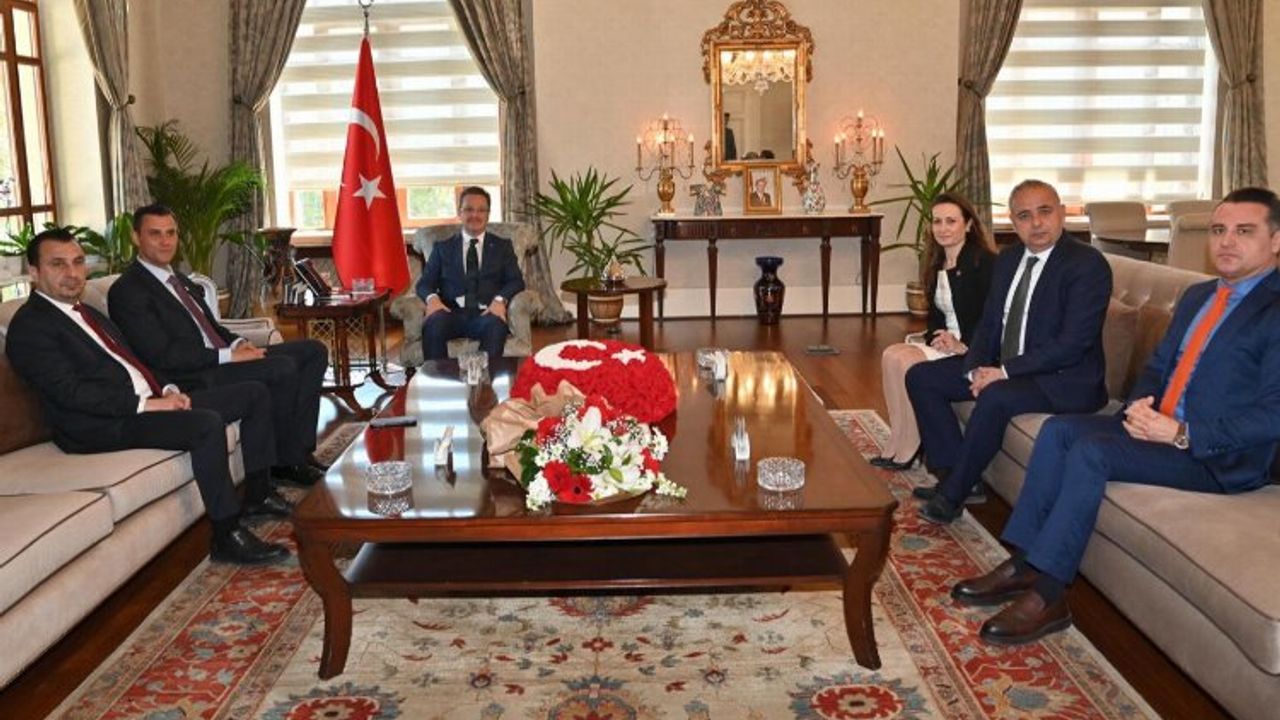 Manisa Büyükşehir Belediye Başkanı Ferdi Zeyrek, 31 Mart Yerel Seçimleri’nin ardından Manisa Büyükşehir Belediye Başkanlığı koltuğuna oturmasının ardından ilk ziyaretini şehrin Valisi Enver Ünlü’ye gerçekleştirdi. Manisa Valisi Enver Ünlü, Manisa Büyükşehir Belediye Başkanı Ferdi Zeyrek’i tebrik ederek, başarılar diledi. MANİSA (İFGA) - 31 Mart tarihinde yapılan yerel seçimlerin ardından vatandaşların büyük bir desteğini alarak Manisa Büyükşehir Belediye Başkanlığı koltuğuna oturan Ferdi Zeyrek, ilk ziyaretini Manisa Valisi Enver Ünlü’ye gerçekleştirdi. Manisa Büyükşehir Belediye Başkanı Ferdi Zeyrek’e ziyaretinde CHP Manisa Milletvekilleri Ahmet Vehbi Bakırlıoğlu, Bekir Başevirgen, ile CHP İl Başkanı İlksen Özalper eşlik ederken, Vali Yardımcısı Mevlüt Özmen de ziyarette yer aldı. Manisa Büyükşehir Belediye Başkanı Ferdi Zeyrek ziyaretinde Vali Enver Ünlü’ye çiçek ve tatlı takdim etti.