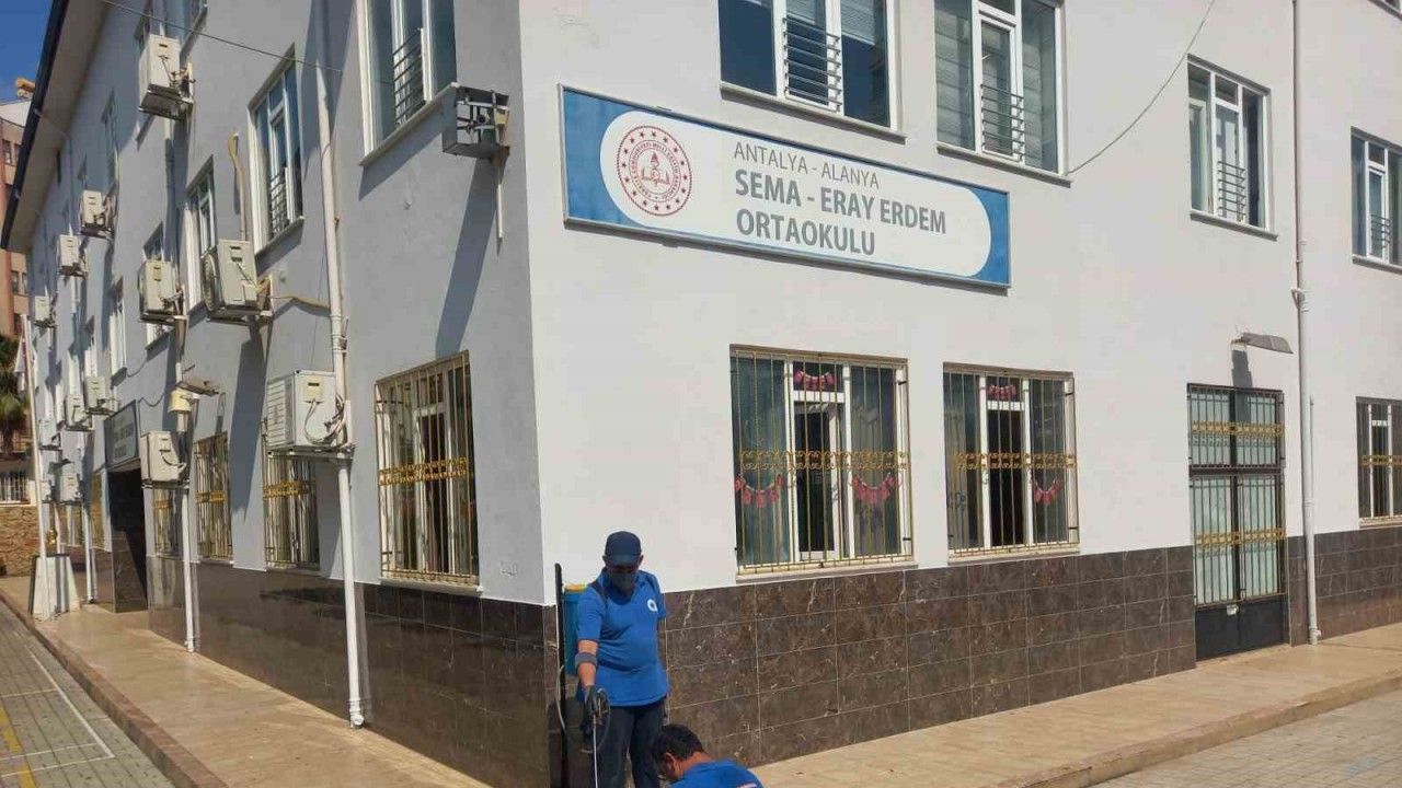 Çevre Koruma ve Kontrol Dairesi Başkanlığı’na bağlı Çevre Sağlığı Şube Müdürlüğü ekipleri de ana okullarda ilaçlama çalışması gerçekleştirdi. Antalya Büyükşehir Belediyesi ekipleri okullardaki kanalizasyon ve yağmur giderleri, lavabo ve tuvalet giderleri başta olmak üzere okul bahçelerinde ilaçlama faaliyeti gerçekleştirdi.