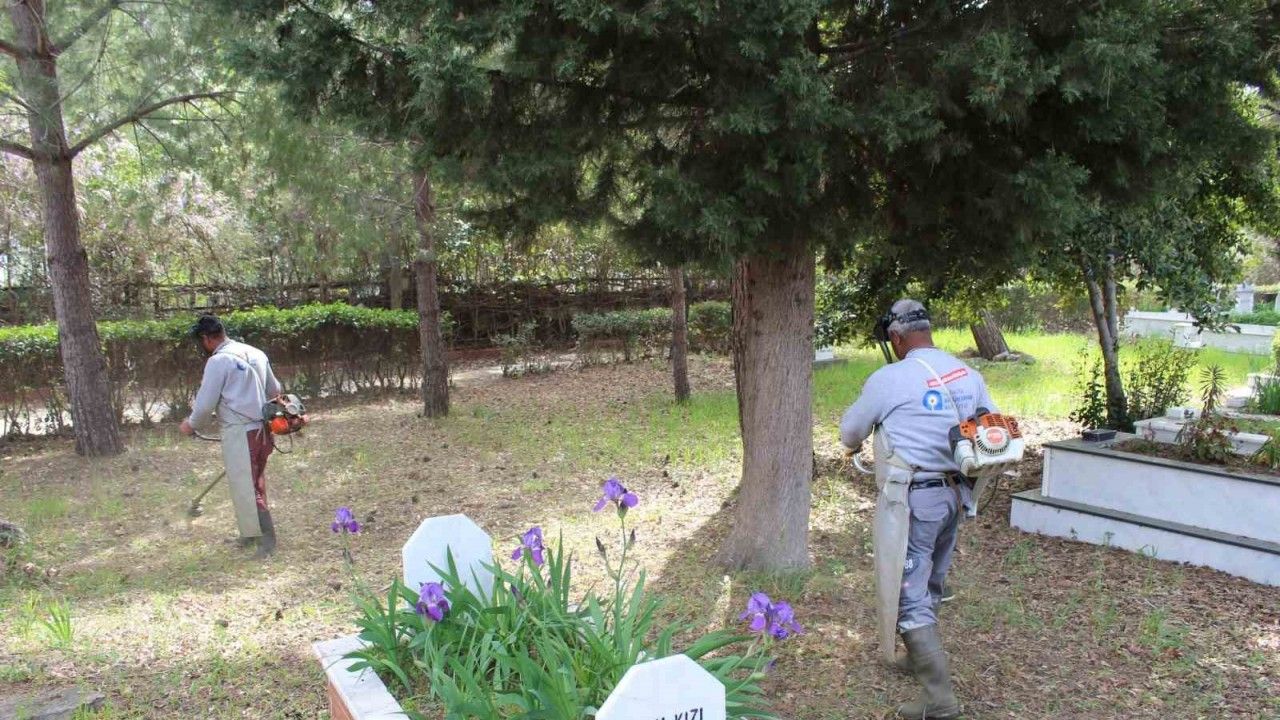 Antalya Büyükşehir Belediyesi ekipleri ilçelerdeki mezarlık alanlarında bakım onarım çalışması başlattı.