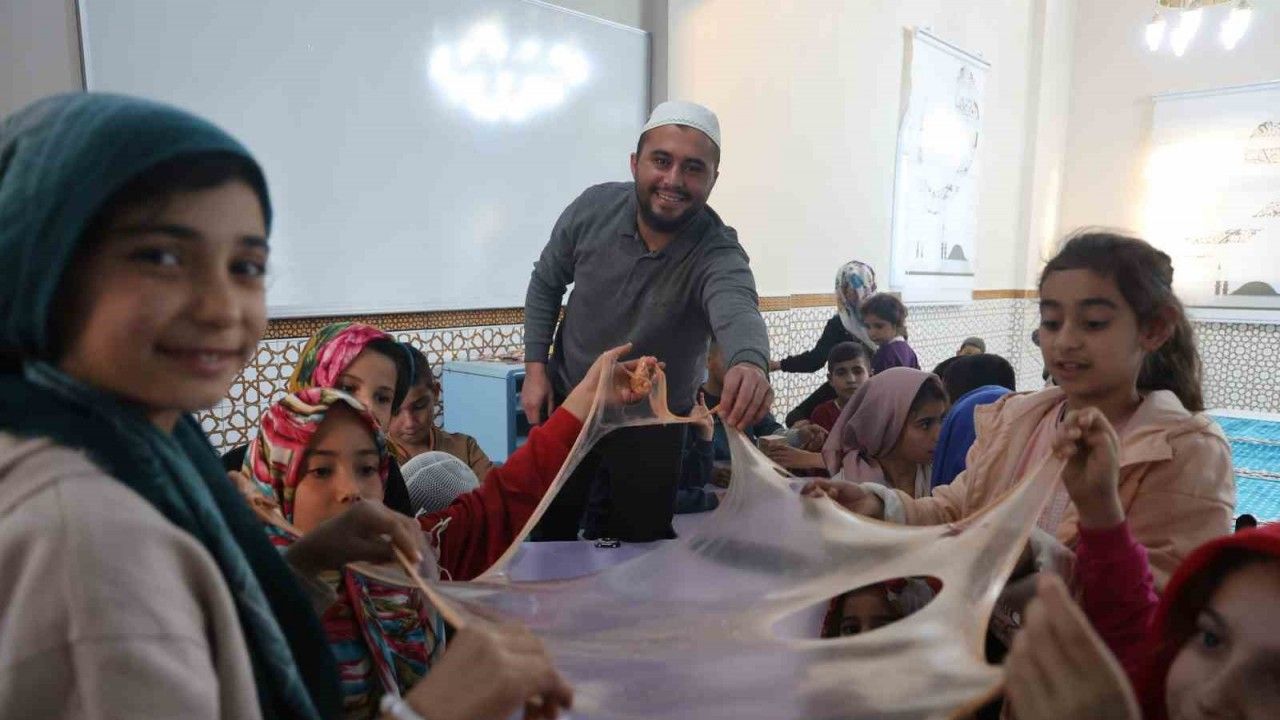 Çocukların camiyi sevmeleri için çocuk marketi, sinema seyri yaşatan ve oyun alanları kuran Mustafa Demir, "Buraya ilk geldiğimizde camide çocukların eksikliğini fark ettik. Buna yönelik bir şeyler yapmak istedik. Dini olarak da bunun sorumluluğunu alarak çocuklara yönelik faaliyetler yapmaya çalıştık. Camide çocuk marketi kurarak çocukların camiye gelmesini sağladık. Sonra da arkamızda gördüğünüz cami çocuk alanı yaparak çocuklar rahat bir şekilde cami cemaatini rahatsız etmeden oyun oynamaları için arkamızdaki alanı yaptık. Bizim için de bu çok iyi oldu. Cemaatin çocuklara karşı hocam çocuklara camiye çağırma çocuklar camiyi kirletiyor gibi söylemlerden de uzak durduk. Belirli günlerde çocuklara yönelik sinema günlerimiz oluyor. Sinema günlerinde, bir dini ve bir de normal çizgi film animasyon filmlerini izliyoruz. Ben 2022 yılı Mart ayında geldim. 3 gün önce de 3 yılımı doldurdum. Camiye ilk başladığımda çocuklar 3 kişi veya 4 kişiydi, şimdiyse camide 100 çocuk var. Köyde de zaten 100 çocuk vardı. Onların tamamı da camiye toplamaya başladık. Namaz sırasında sessiz olmalarını gerektiğini sağladık. Namaz Allah’ın huzurunda olduğumuzu ve Allah’a karşı ibadetlerimizi yapmamız gerektiğini onları anlatarak bu sırada sessiz olmalarını öğrettik. Namaz dışında da gördüğünüz gibi çocukları durduramıyoruz. Ama namaz sırasında çıt yok" dedi.