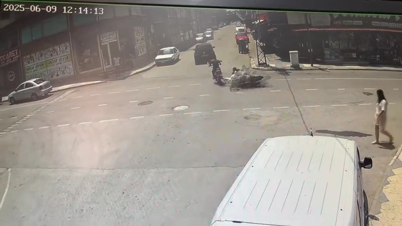 Kaza, İskenderun ilçesi Denizciler Mahallesi mevkisinde yaşandı. Cadde üzerinde ilerleyen motosiklet sürücüsü, yolun karşısına geçmeye çalışan motosikletliye çarpmak istemeyince dengesini kaybederek metrelerce sürüklendi. Motosiklet sürücüsünün yaralandığı kaza anbean güvenlik kamerasına yansıdı.