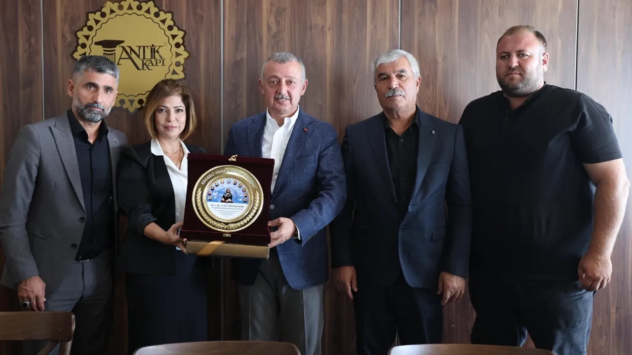 Kocaeli’deki cemevlerinin yöneticileri, Hacı Bektaş Veli ile Abdal Musa türbelerini ziyarete ulaşım ve konaklama desteği veren Büyükşehir Belediye Başkanı Doç.Dr. Tahir Büyükakın’a teşekkür plaketi takdim etti.KOCAELİ (İGFA) - Kocaeli Büyükşehir Belediyesi, ilimizdeki cemevlerinin her türlü ihtiyacını giderirken, Alevi vatandaşlarımızın taleplerini de karşılıksız bırakmıyor. Bu kapsamda, Nevşehir’deki Hacı Bektaş Veli Türbesi ile Antalya’daki Abdal Musa Türbesi’ni ziyaret etmek isteyen vatandaşlarımıza ulaşım ve konaklama desteği sunuldu. Kocaeli’deki cemevlerinin başkan, dede, hoca ve yöneticileri, teşekkür etmek amacıyla Büyükşehir Belediye Başkanı Doç.Dr. Tahir Büyükakın ile bir araya geldi.